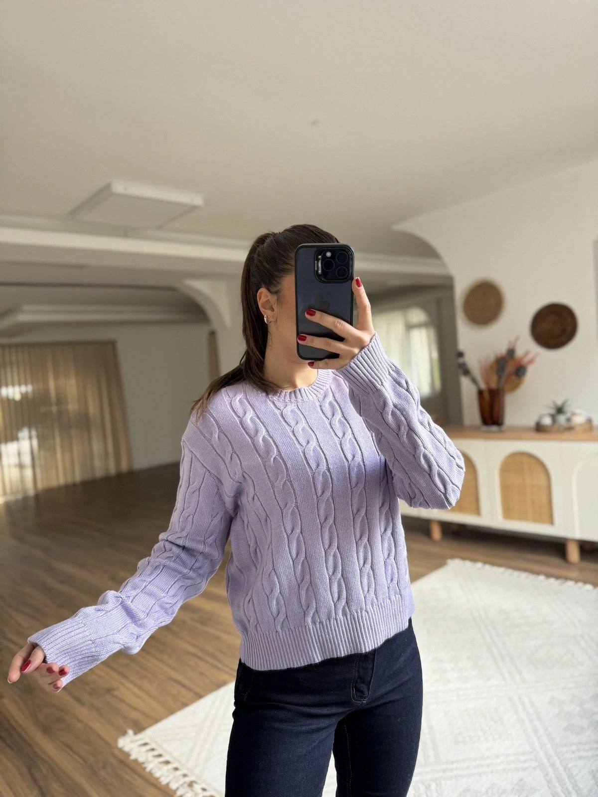 BİSİKLET YAKA SAÇ ÖRGÜ KAZAK – LİLA