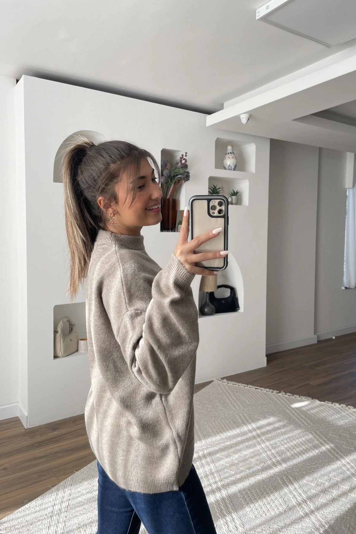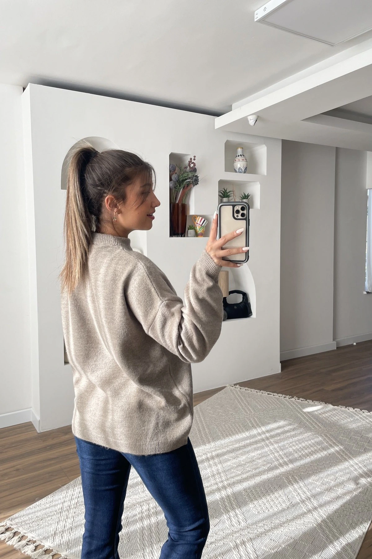 BİSİKLET YAKA SALAŞ KAZAK – BEJ