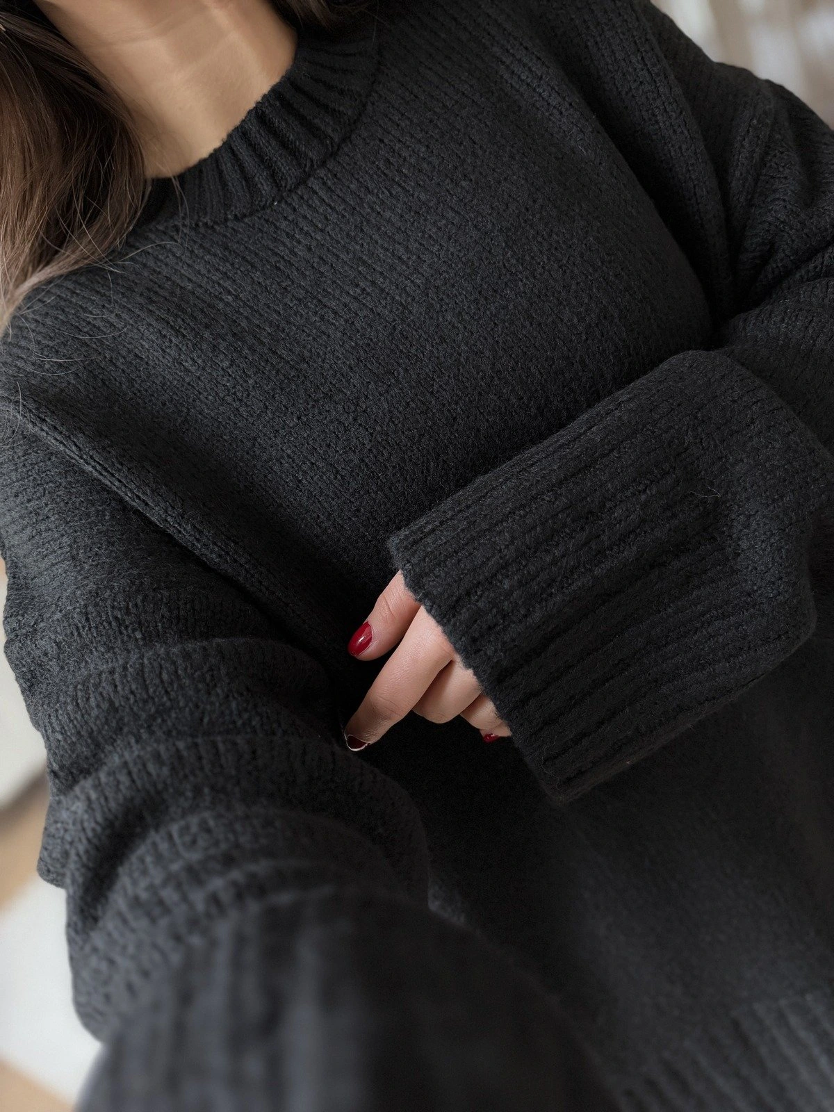 BİSİKLET YAKA SALAŞ KAZAK – SİYAH