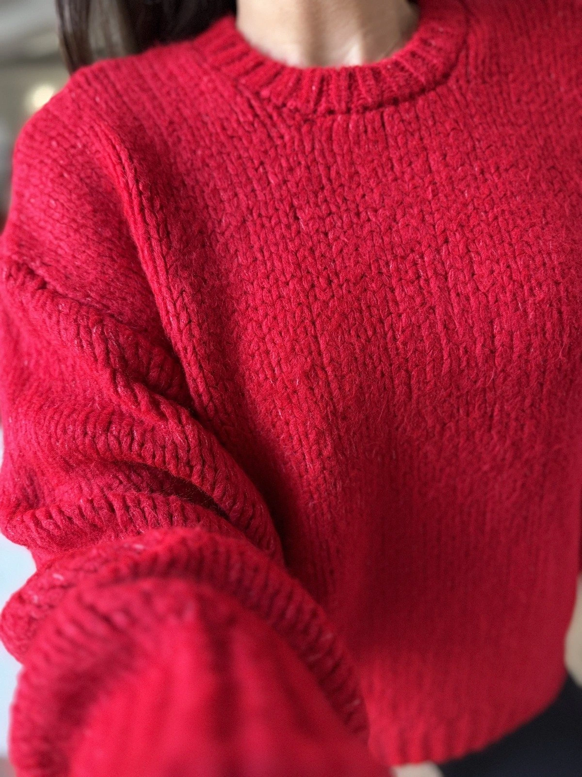 BİSİKLET YAKA SALAŞ SELANİK ÖRGÜ KAZAK – KIRMIZI