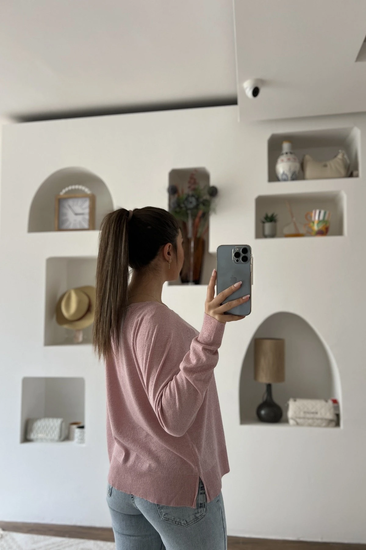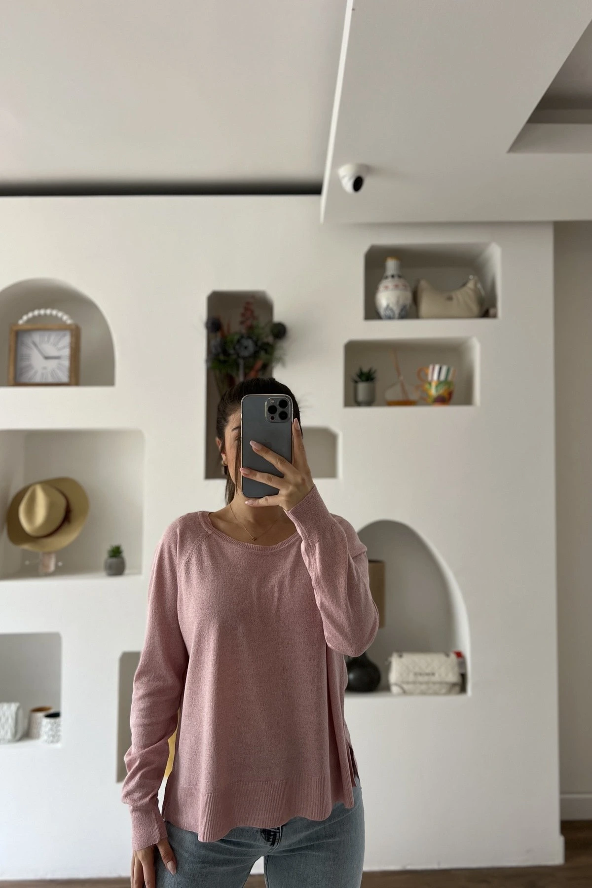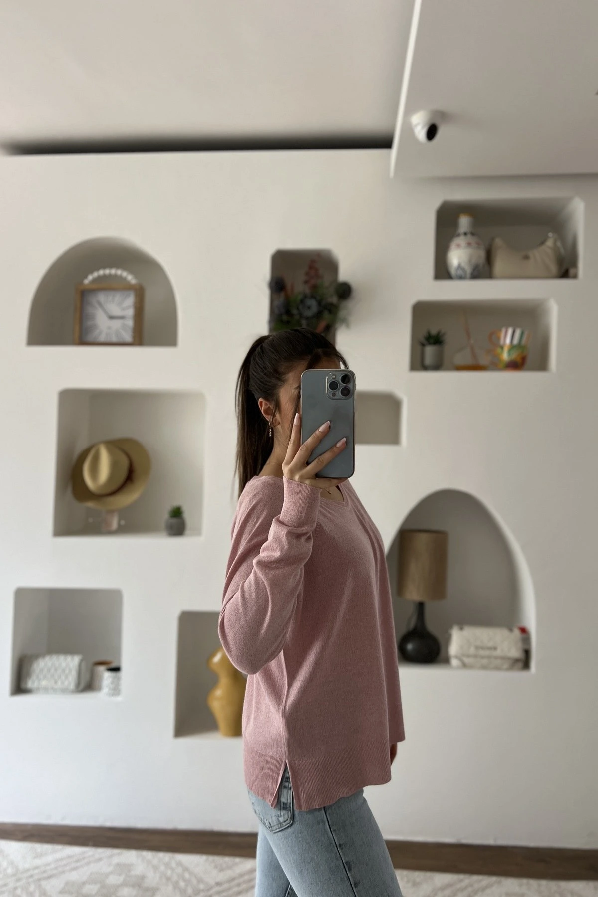 BİSİKLET YAKA SİMLİ BASİC İNCE VİSKON KAZAK – PEMBE