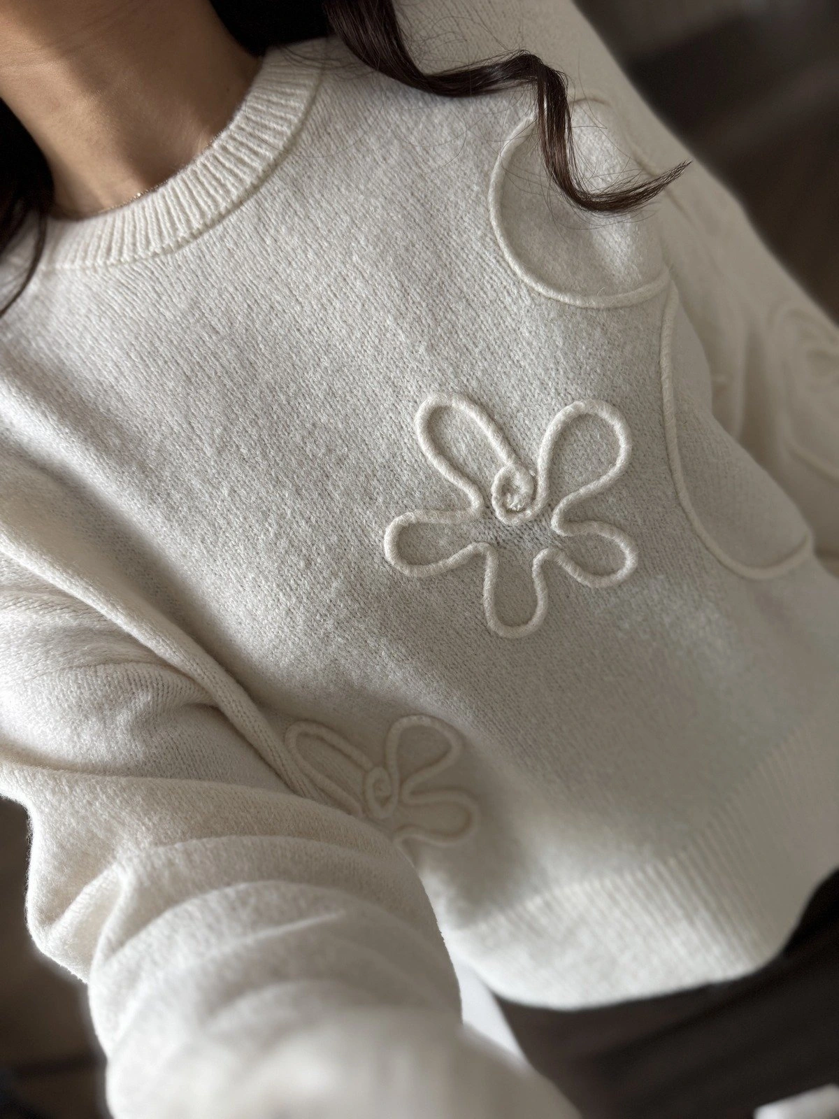 BİSİKLET YAKA SUZENİLİ SALAŞ KAZAK – KREM