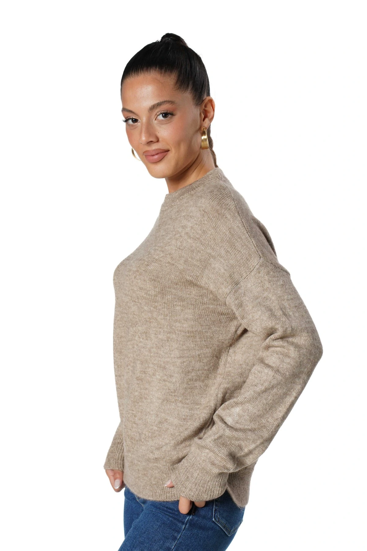 BİSİKLET YAKA VİSKON KAZAK – CAMEL