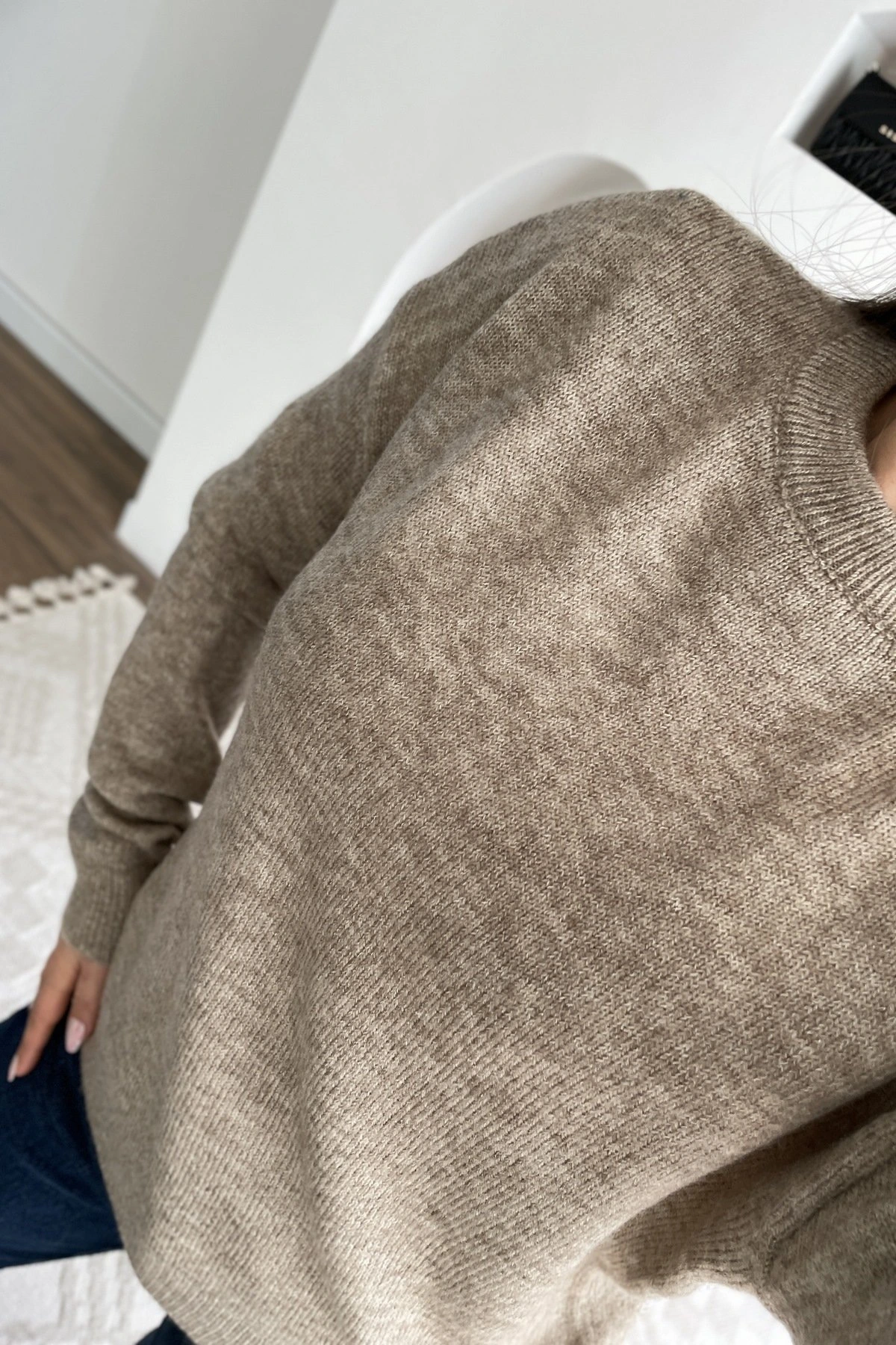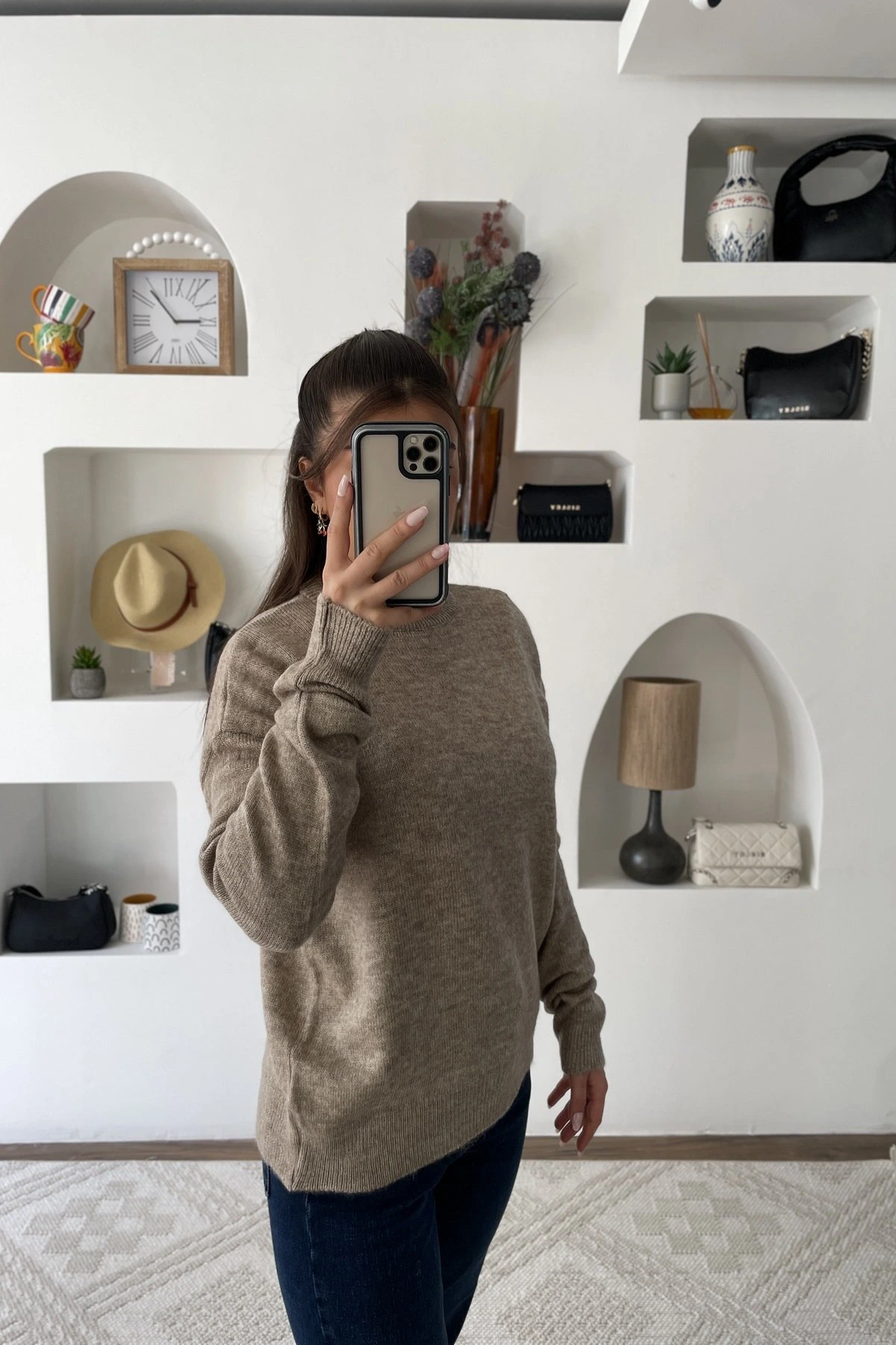 BİSİKLET YAKA VİSKON LİKRALI BASİC KAZAK – CAMEL