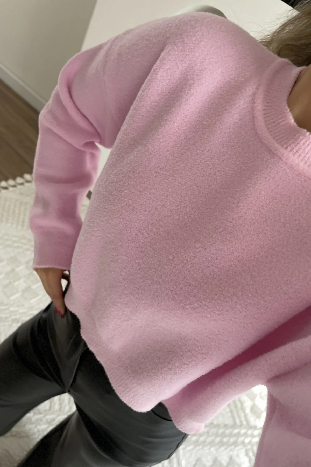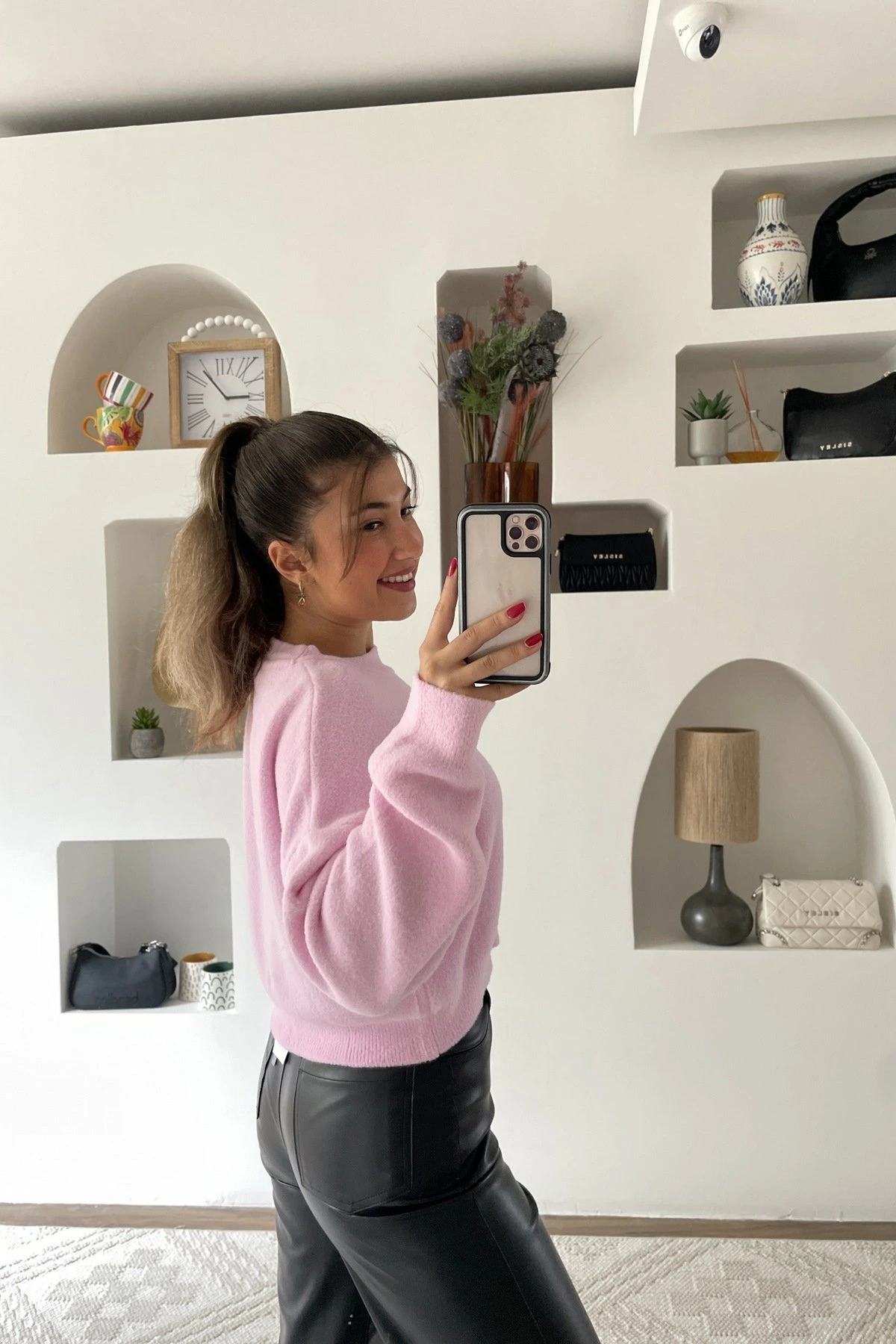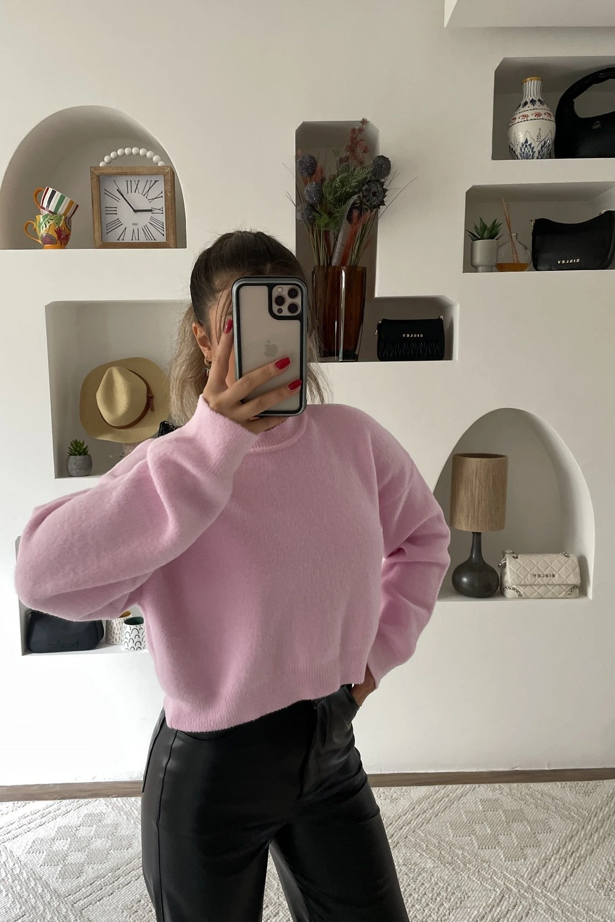 BİSİKLET YAKA VİSKOS KARIŞIM YUMOŞ KAZAK – PEMBE