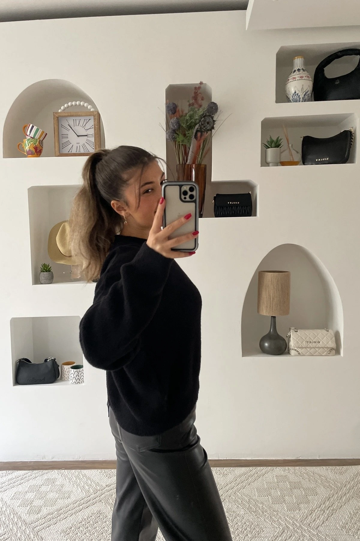 BOL PAÇA CEPLİ DERİ PANTOLON - SİYAH