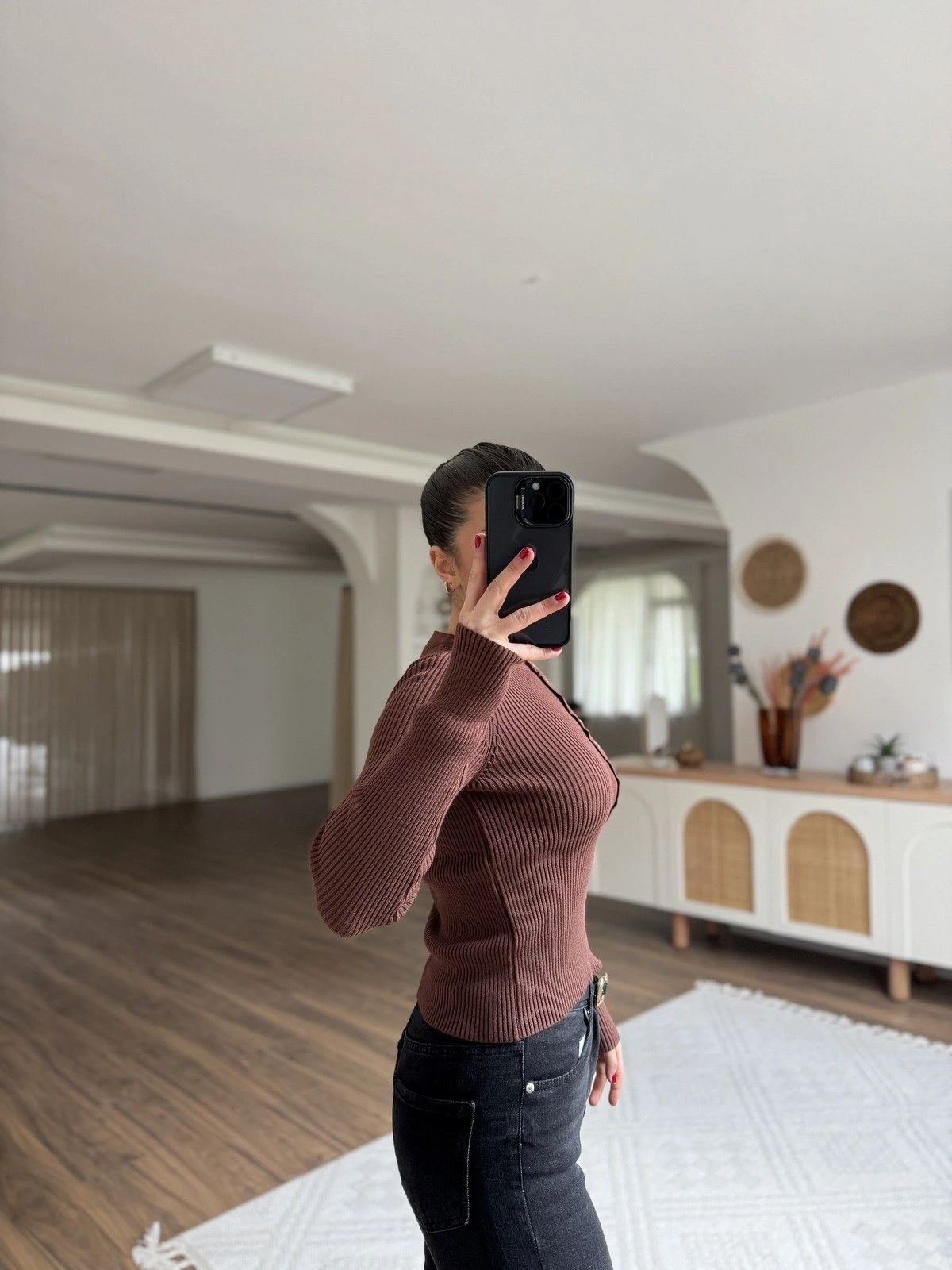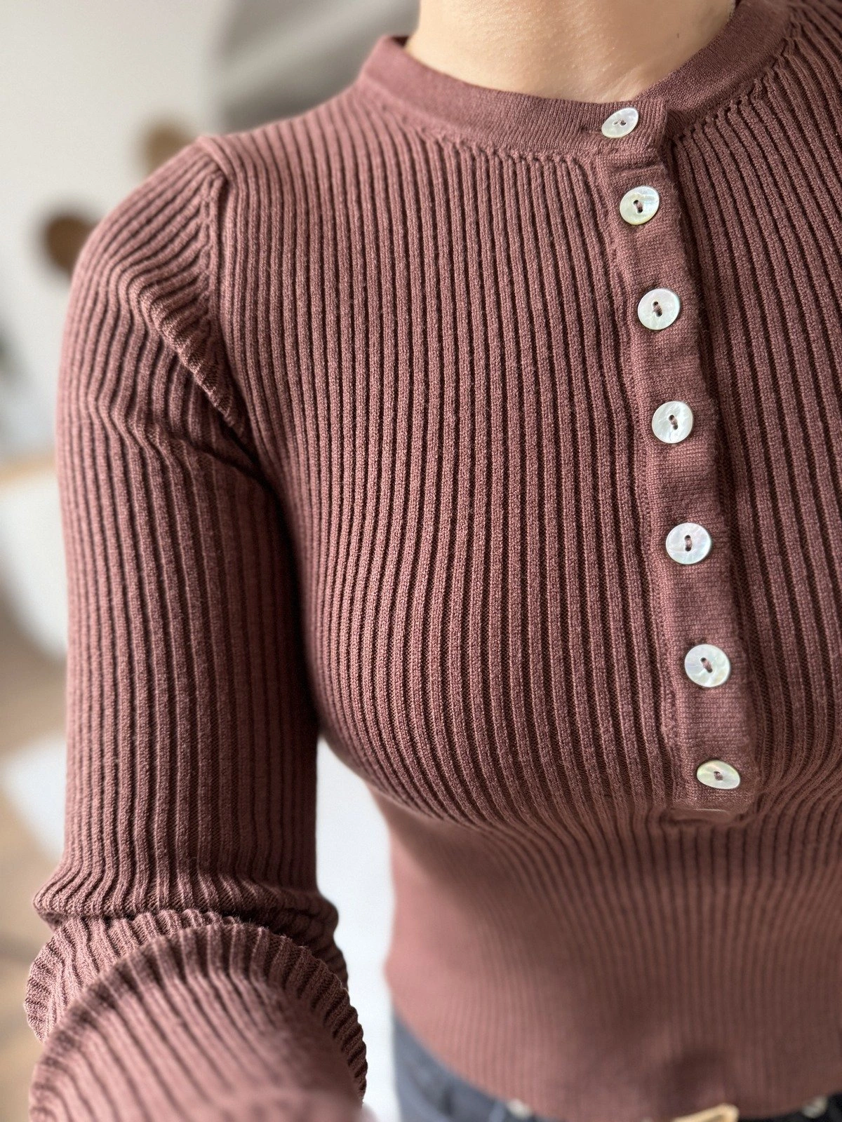 BİSİKLET YAKA YARI PATLI FİTİLLİ VİSKON KAZAK – KAHVE