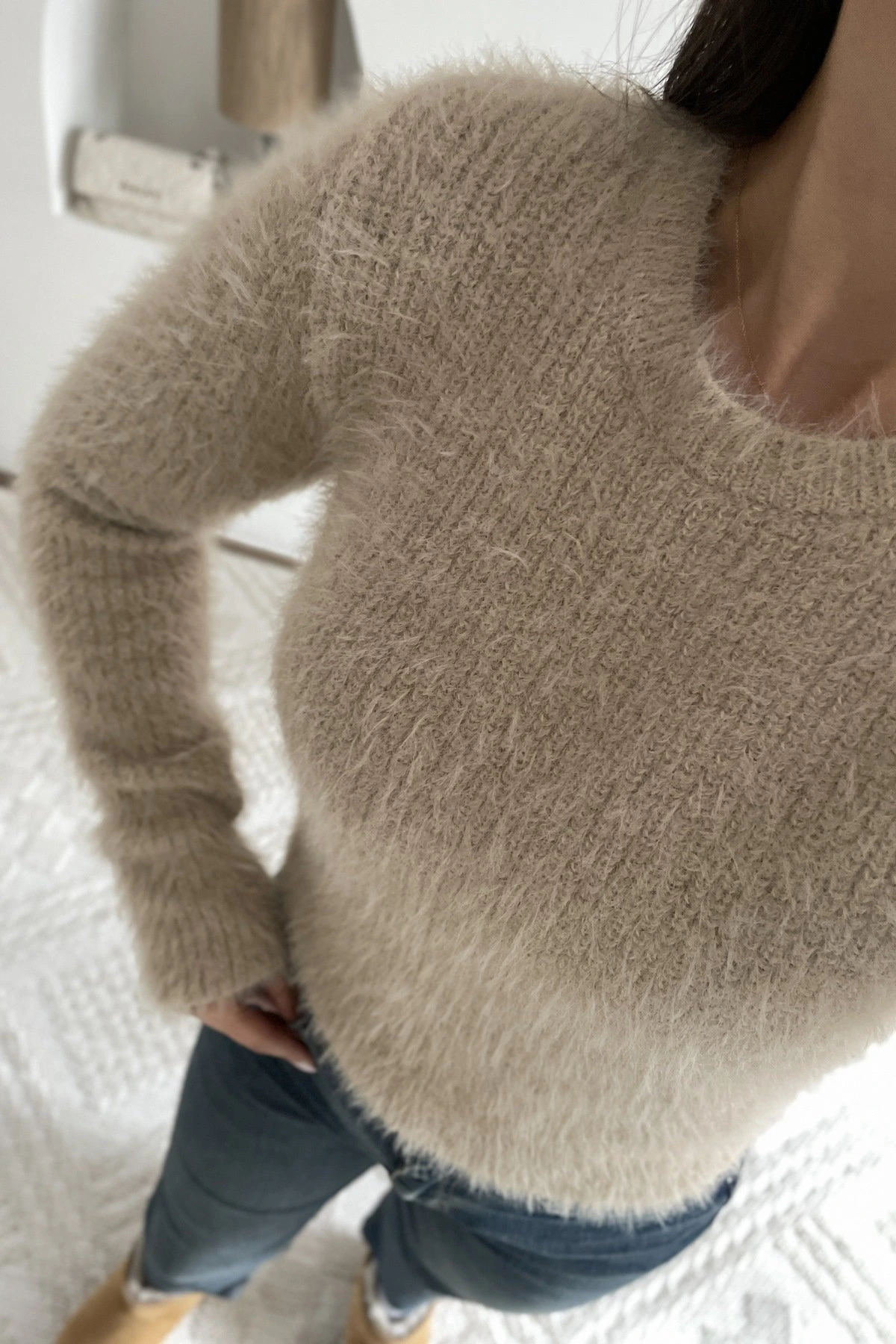 BİSİKLET YAKA YUMUŞAK DOKU PARLAK TRİKO KAZAK – BEJ