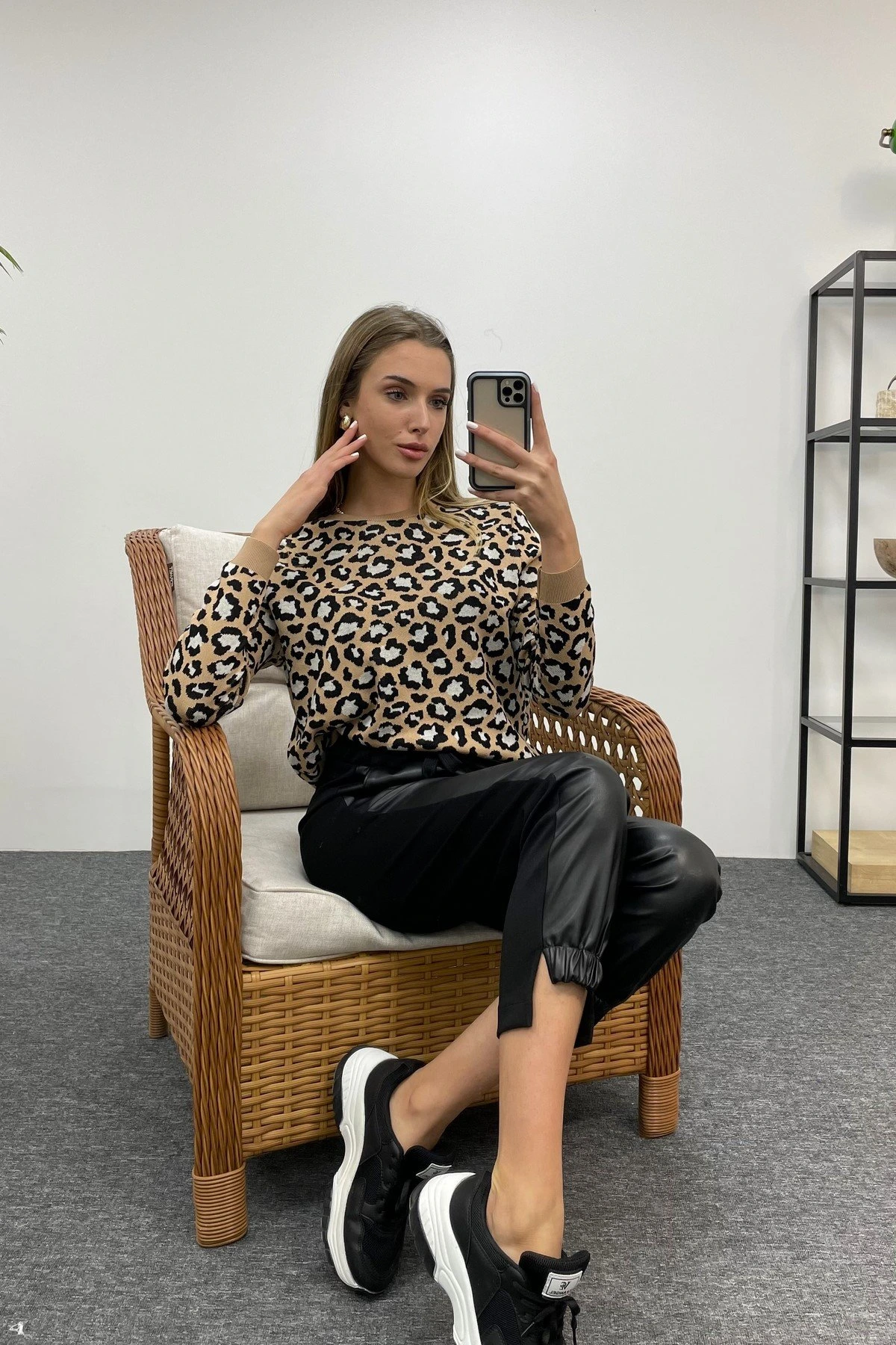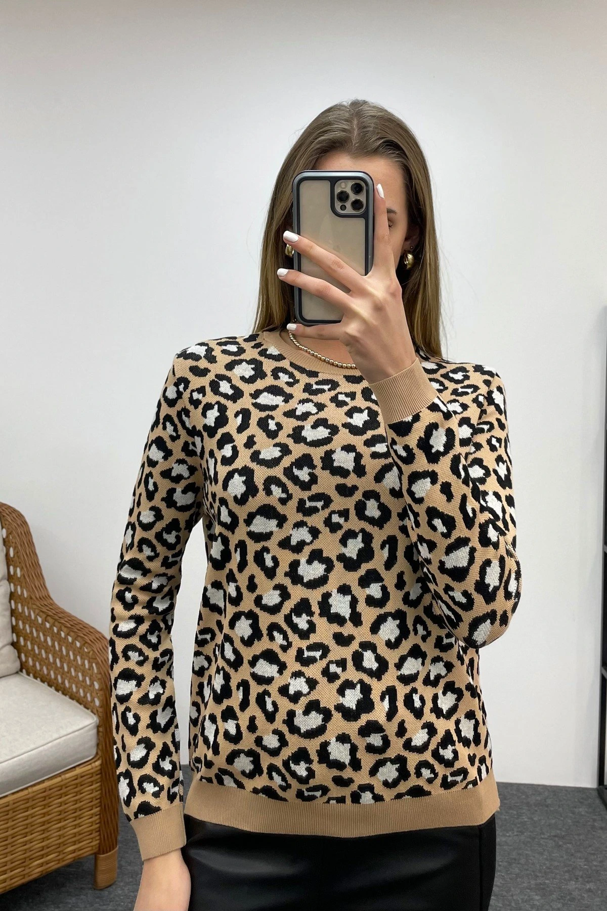 BİSİKLET YALA LEOPAR KAZAK – CAMEL