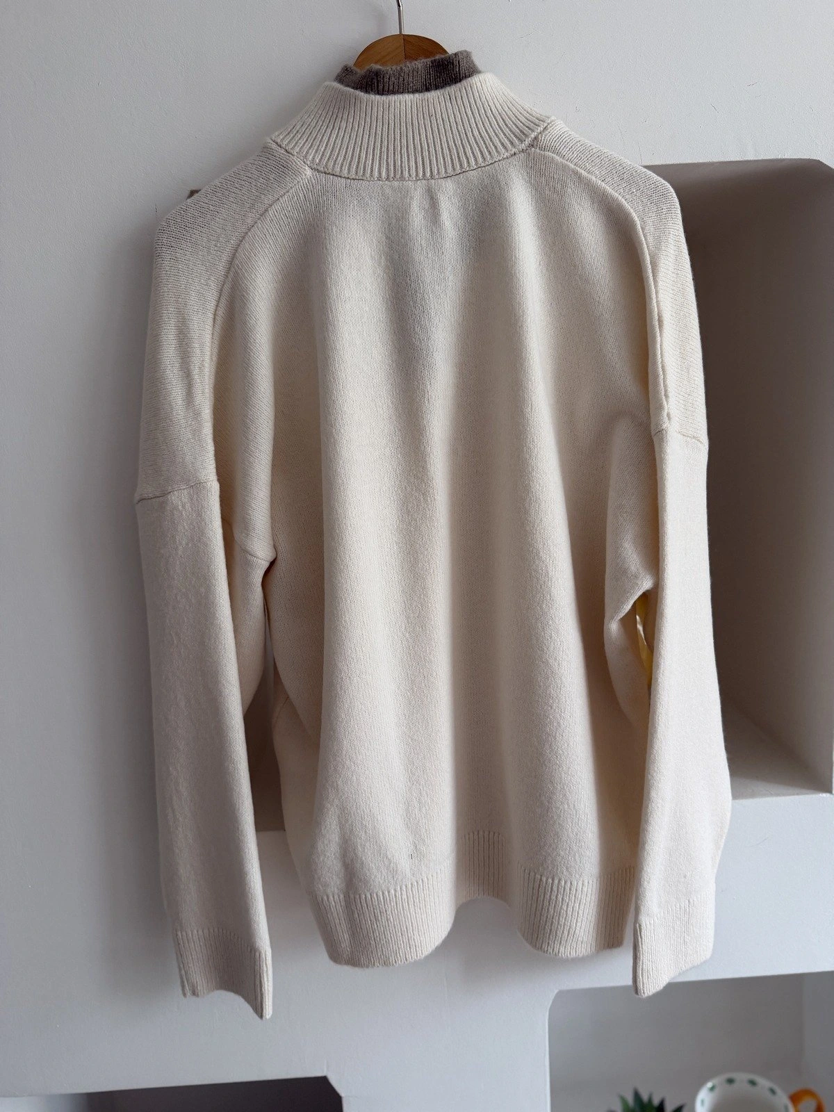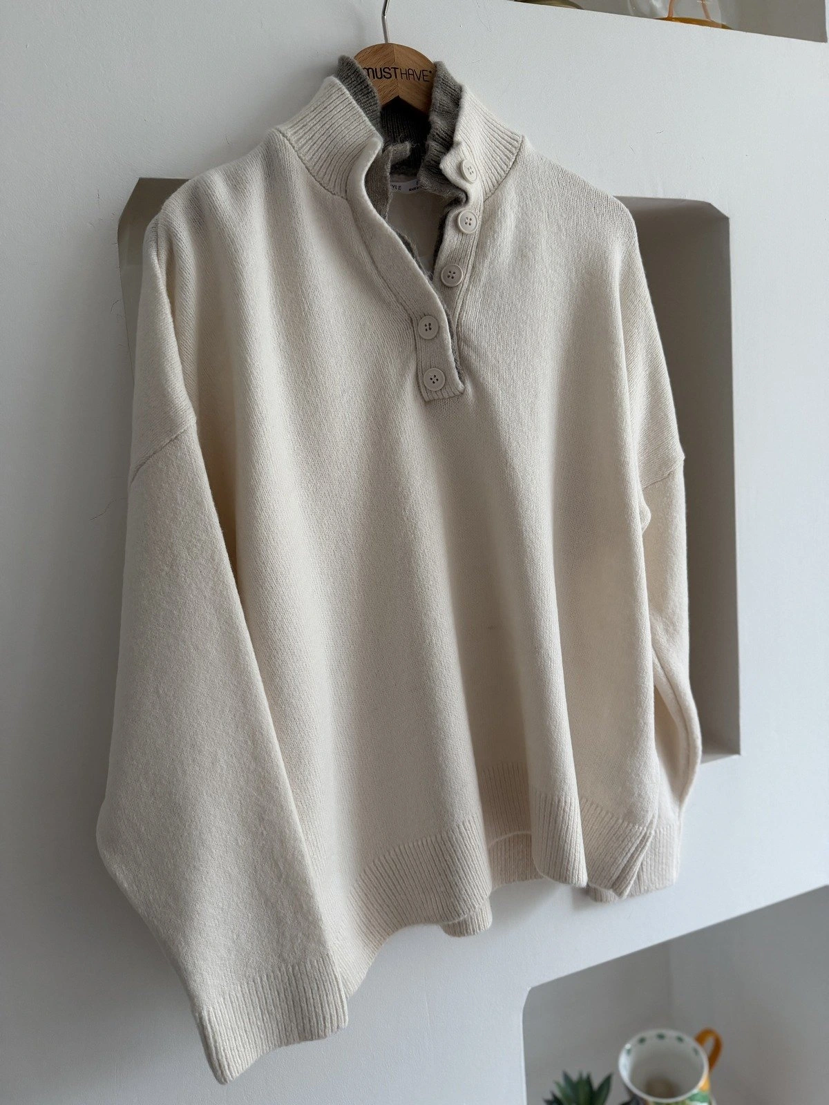 ÇİFT DİK YAKA DÜĞMELİ SALAŞ KAZAK – KREM