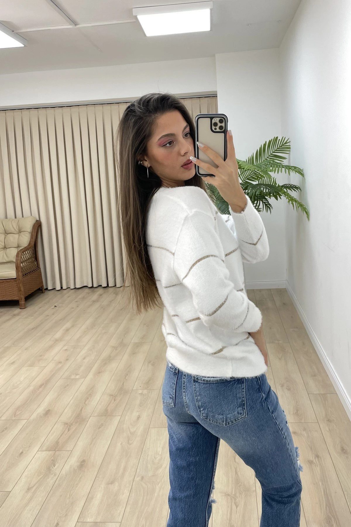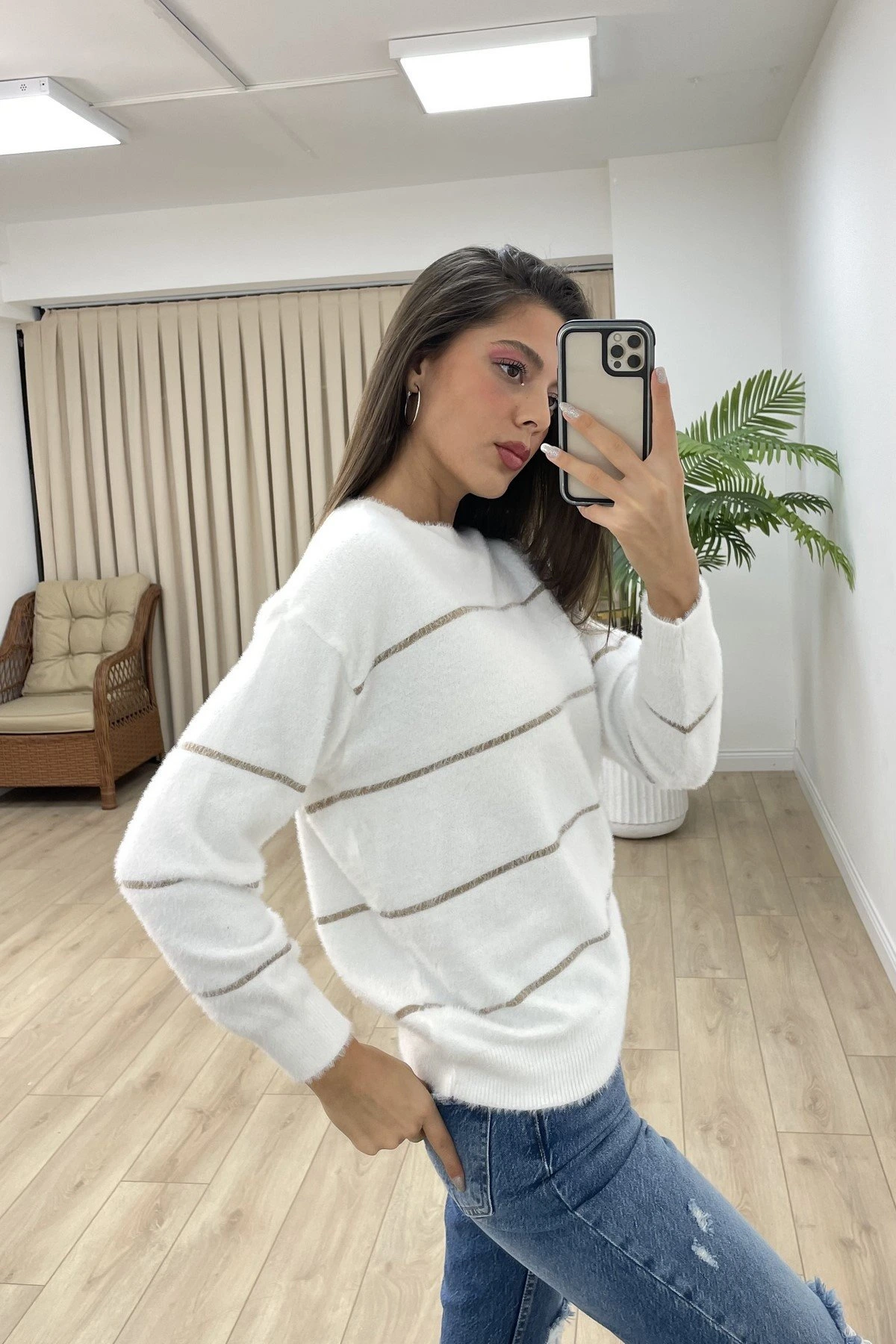 ÇİZGİ SİMLİ YUMOŞ KAZAK – EKRU