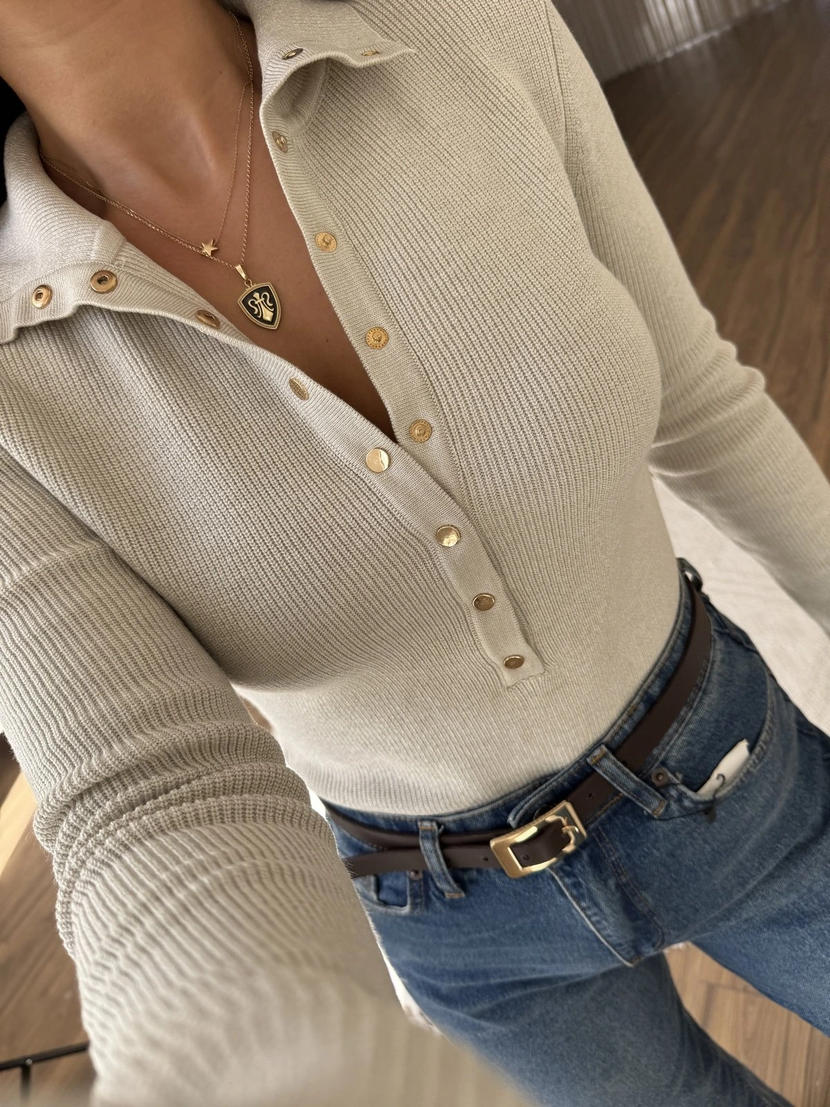 DİK YAKA ÇITÇITLI PAMUK KARIŞIM KAZAK – TAŞ