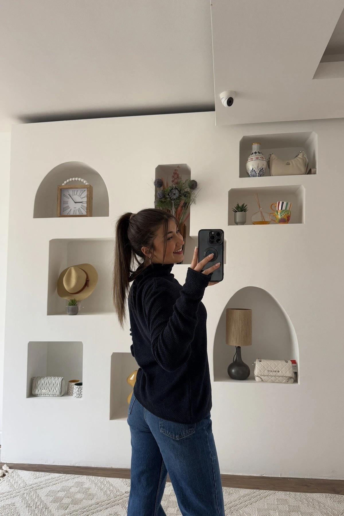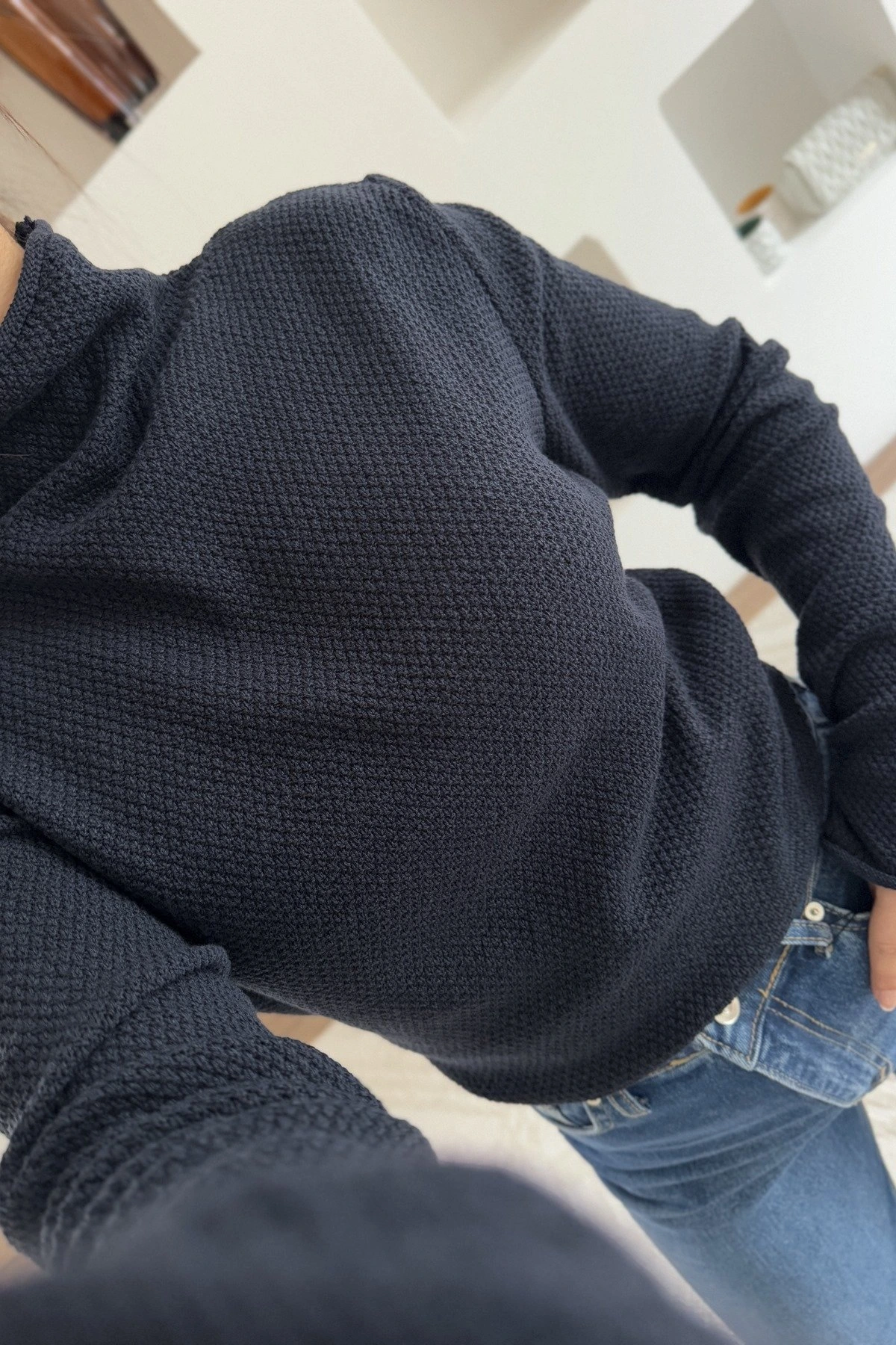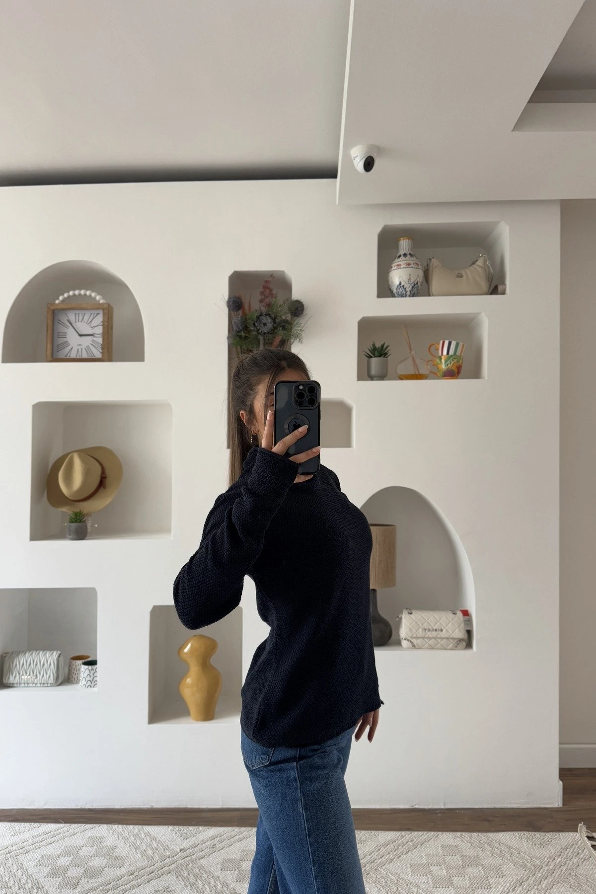 DİK YAKA İNCE DOKUMA PAMUK KARIŞIM KAZAK – LACİVERT