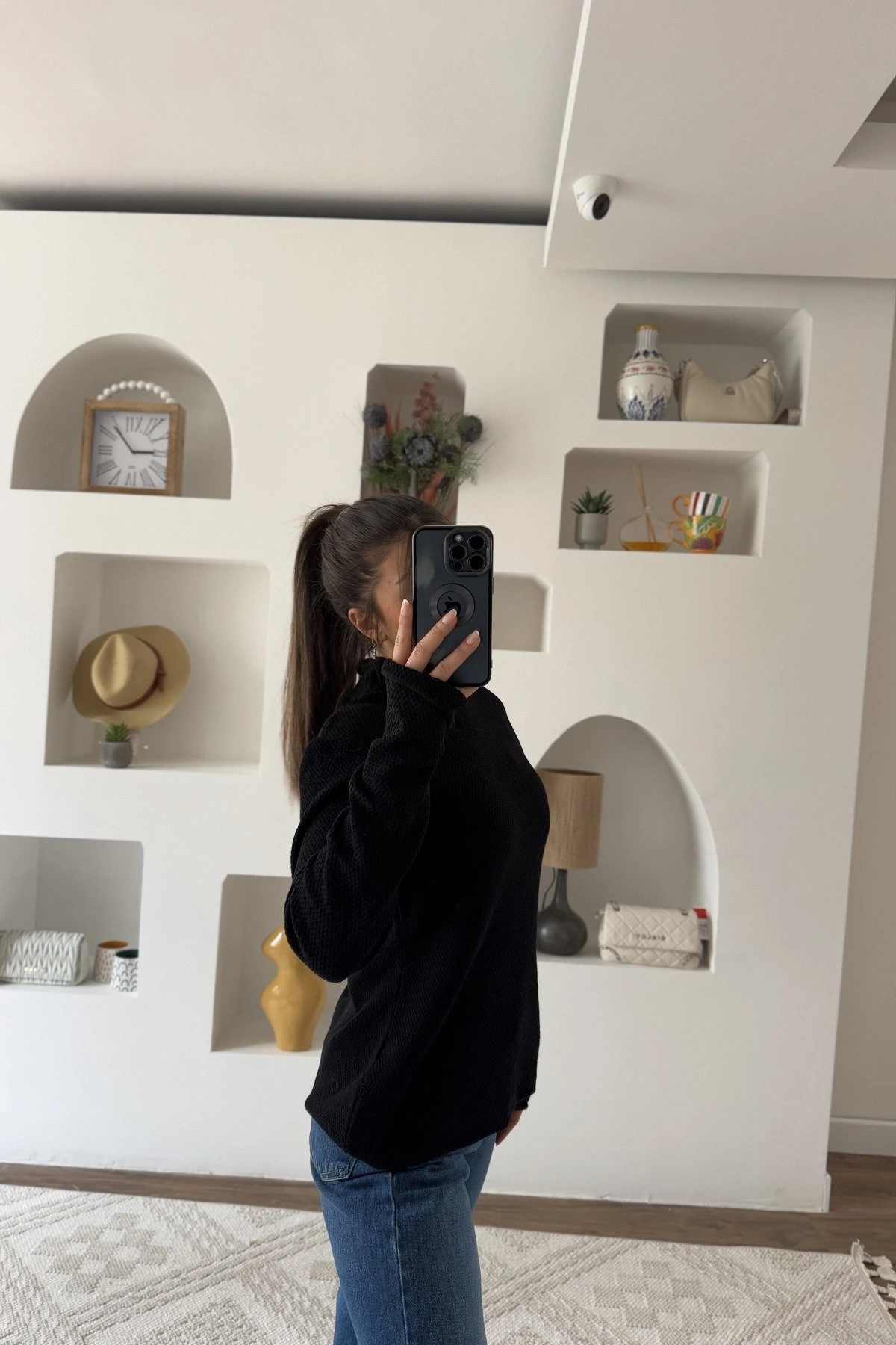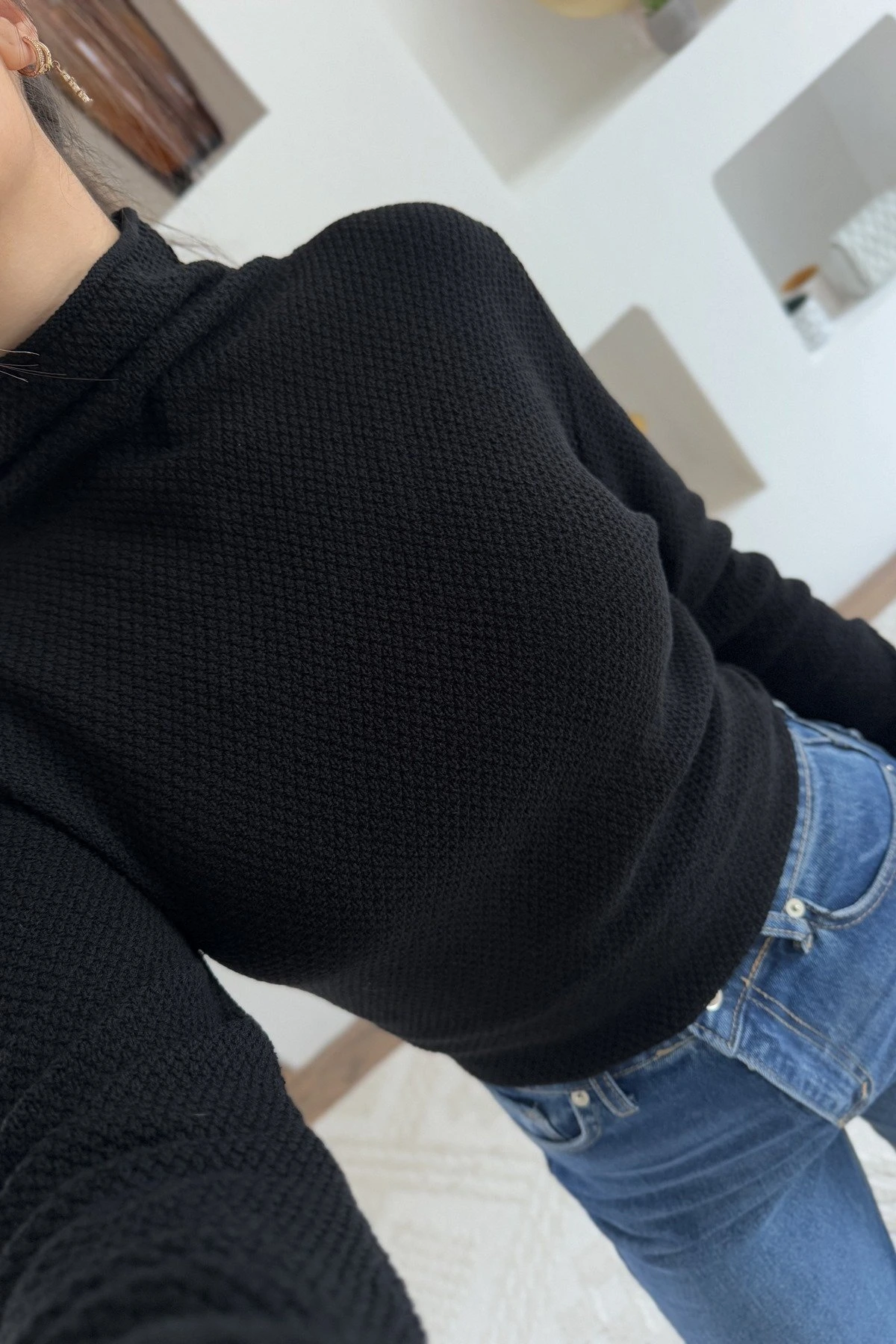 DİK YAKA İNCE DOKUMA PAMUK KARIŞIM KAZAK – SİYAH