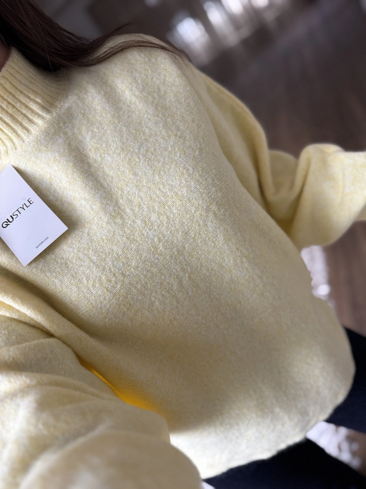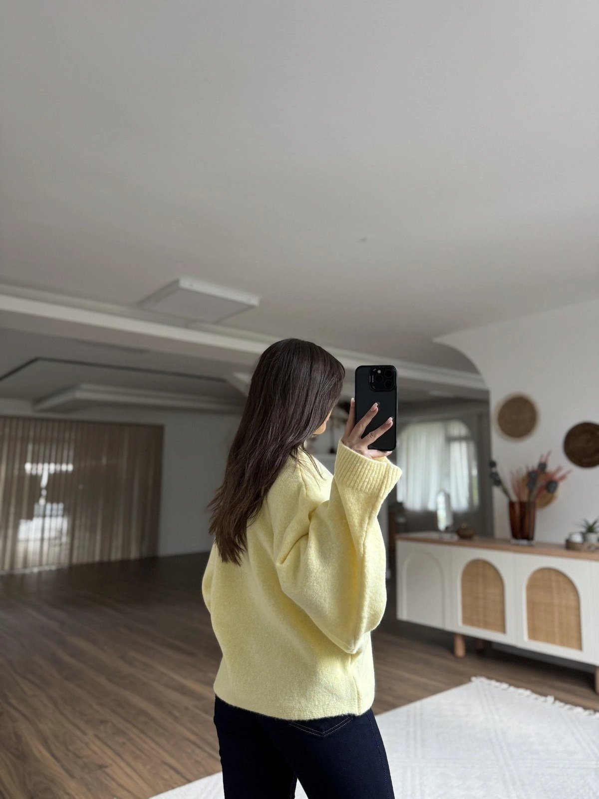 DİK YAKA YARASA KOL YÜN KARIŞIM KAZAK – SARI