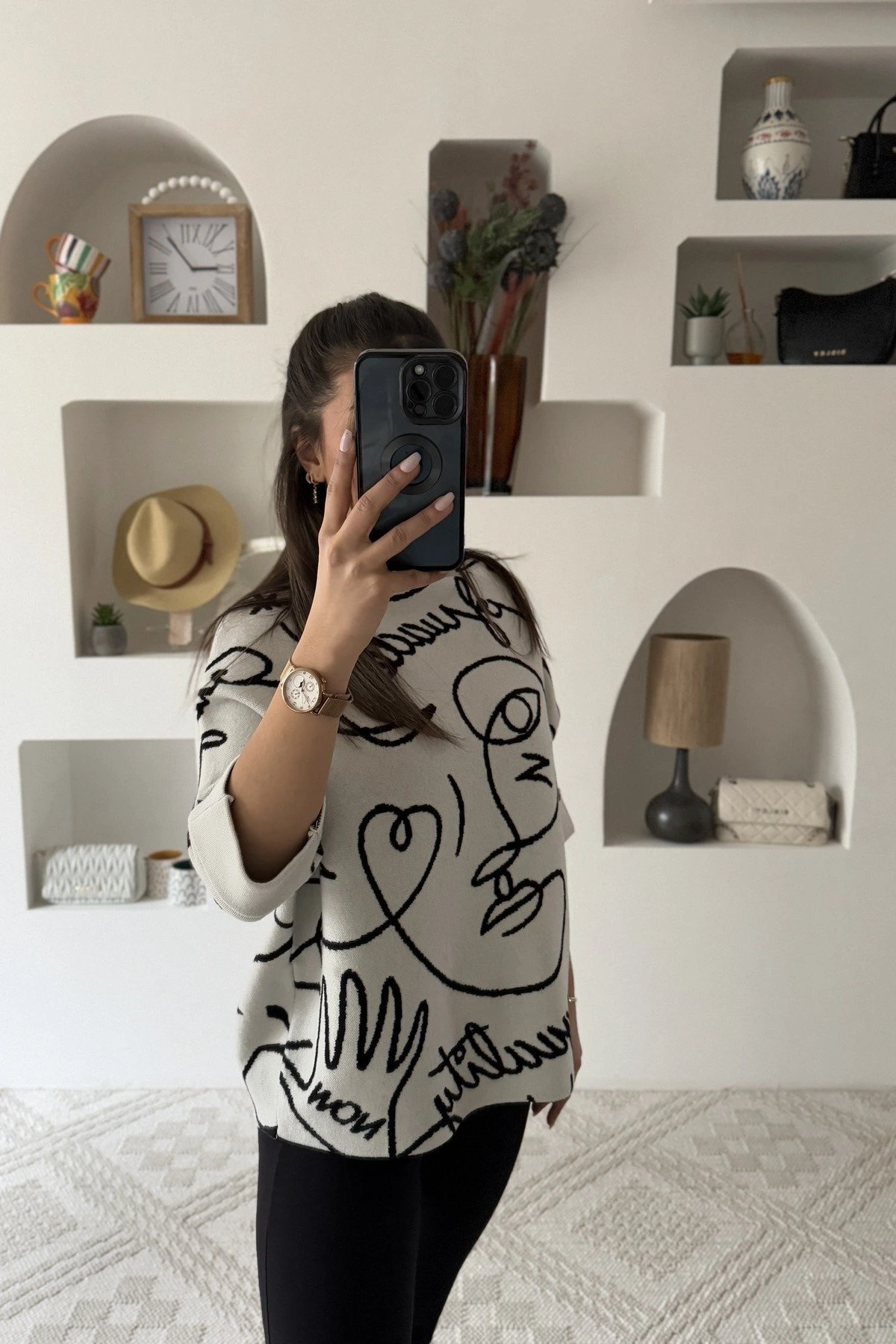 ZEBRA DESEN DUBLE TRUVAKAR KOL VİSKON KAZAK - KEMİK