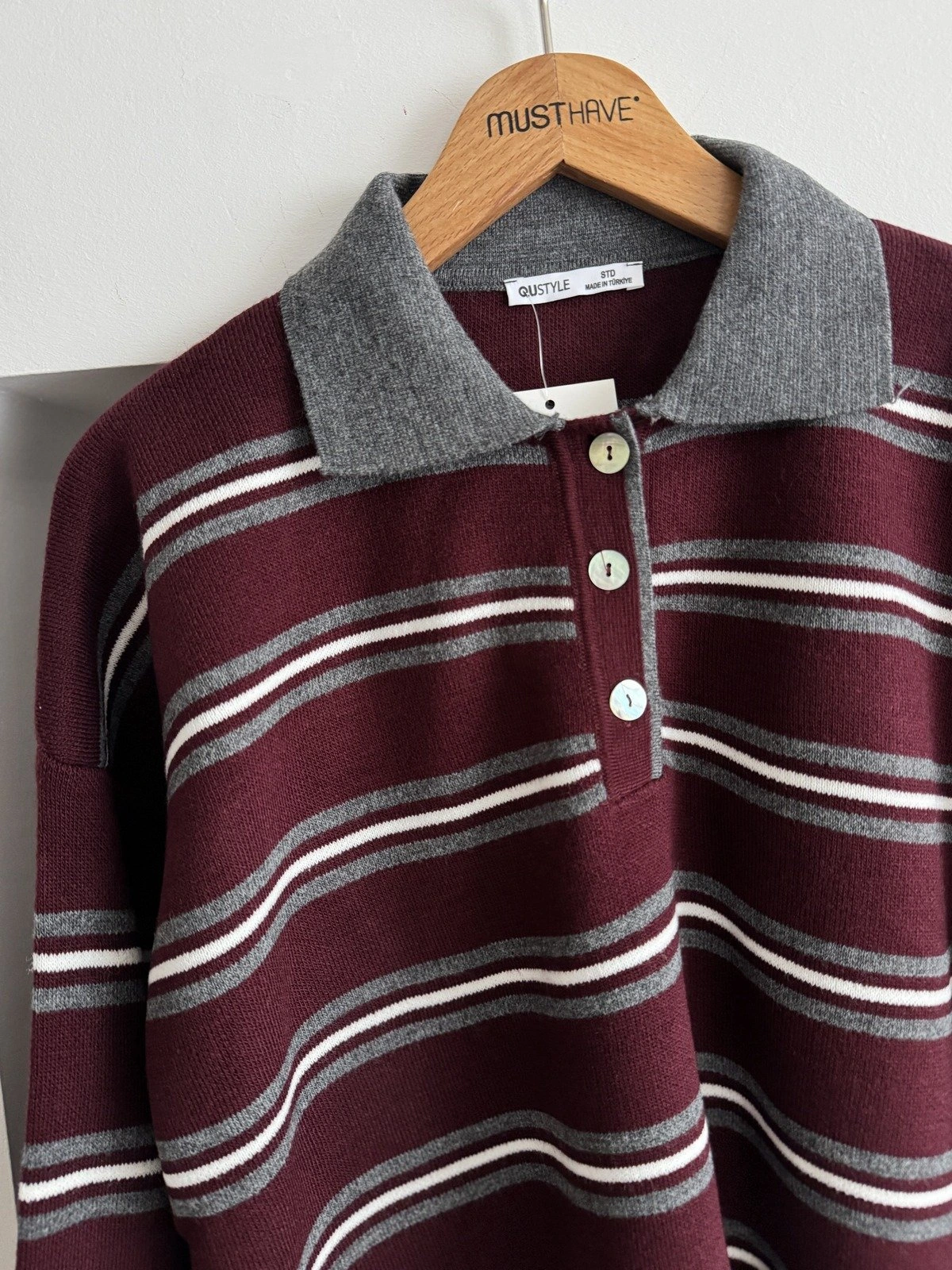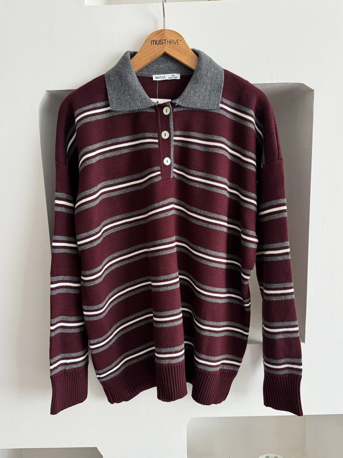DÜĞMELİ POLO YAKA KAZAK – BORDO
