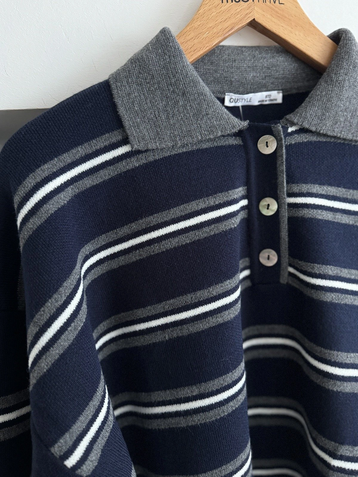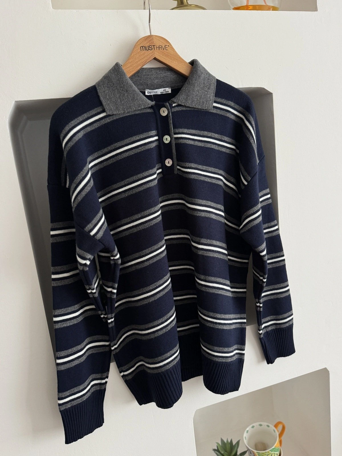 DÜĞMELİ POLO YAKA KAZAK – LACİVERT