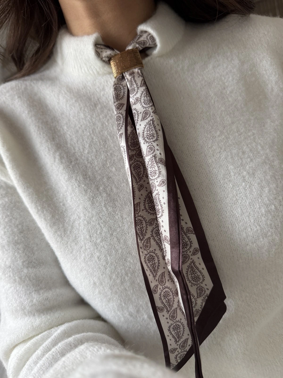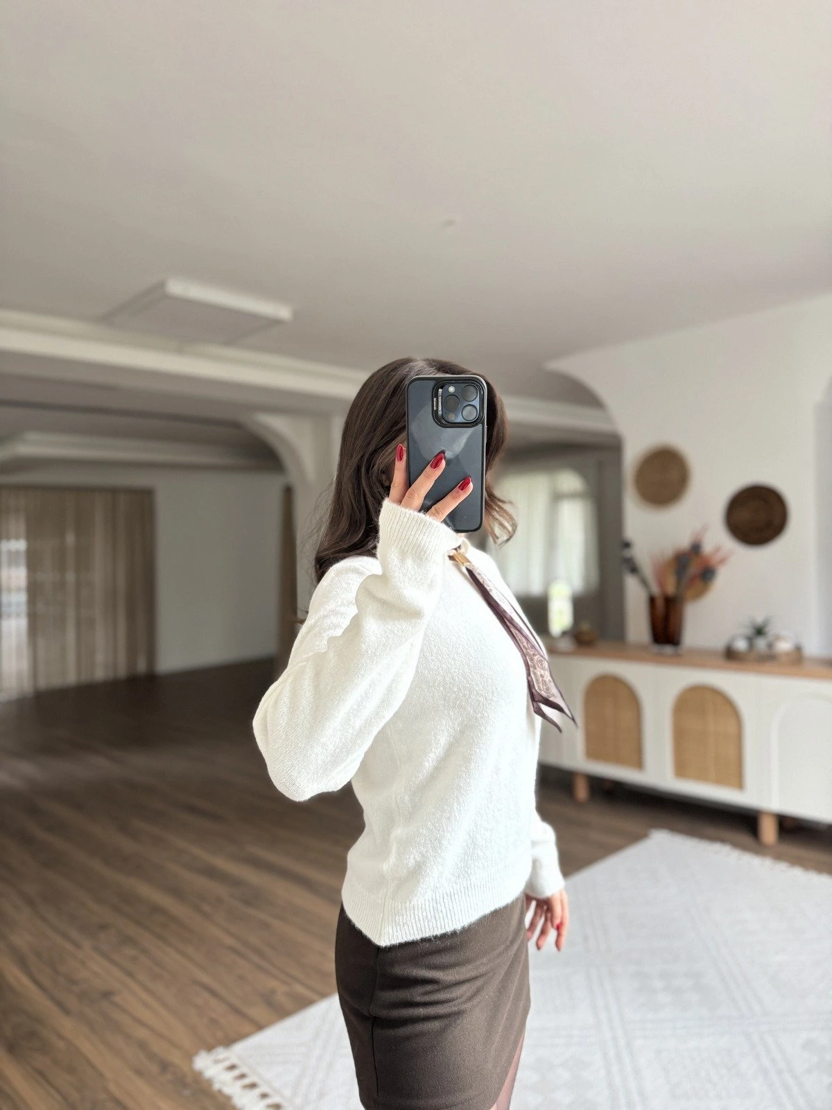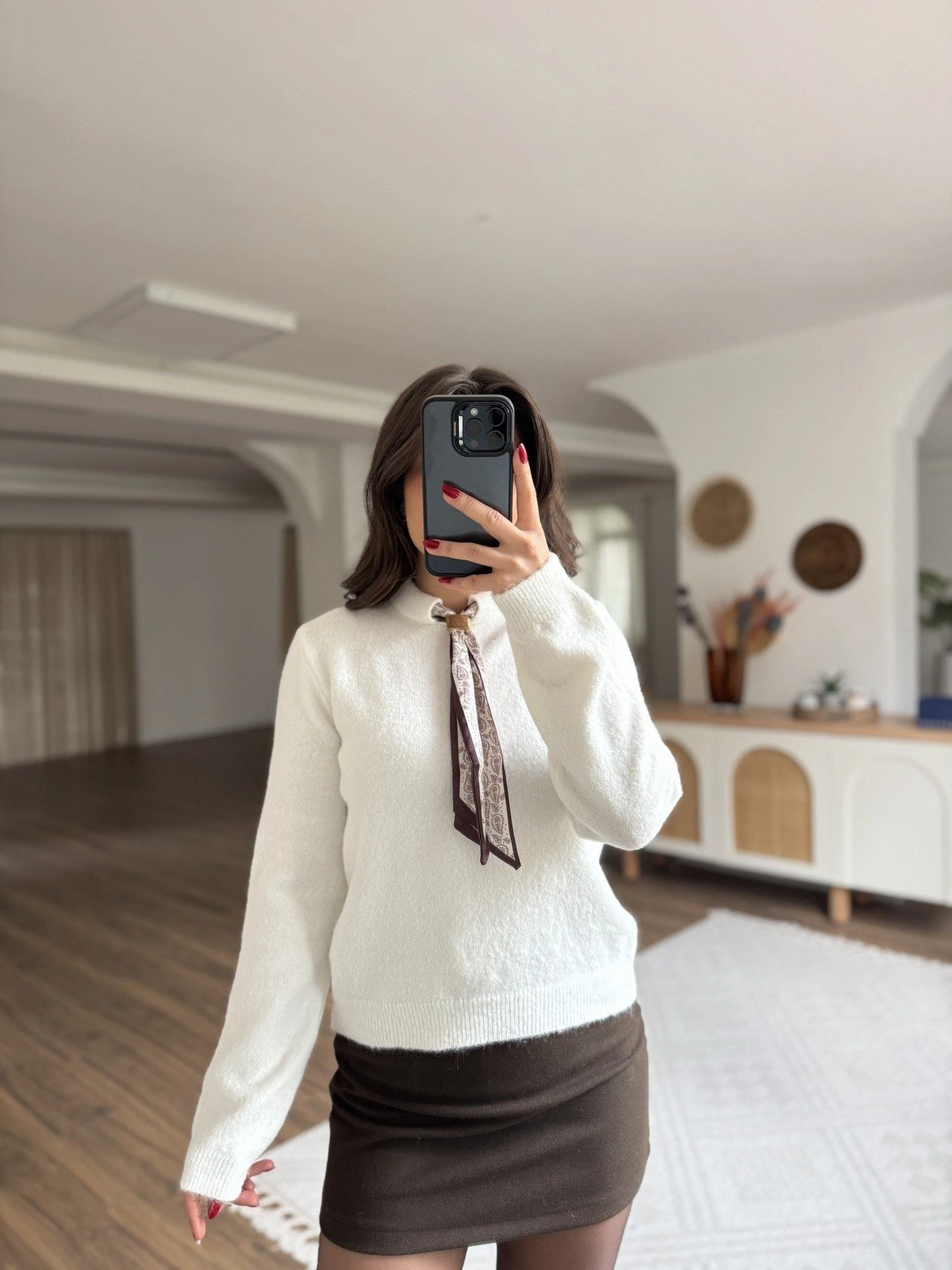 FULARLI BİSİKLET YAKA YÜN KARIŞIM KAZAK – EKRU