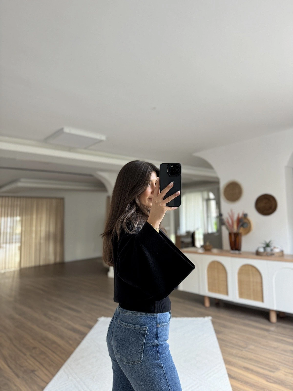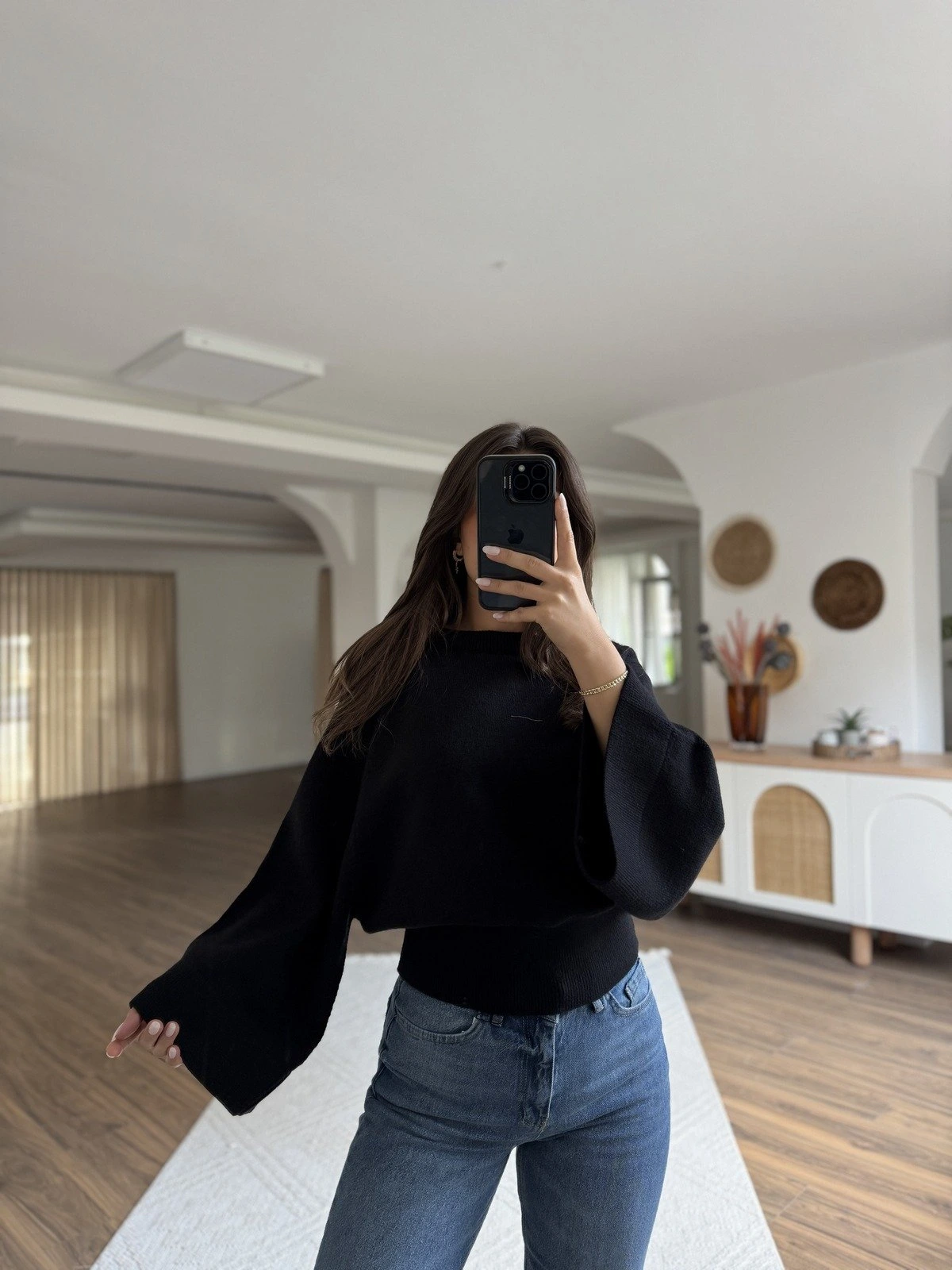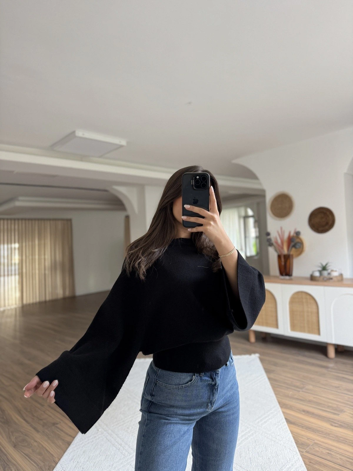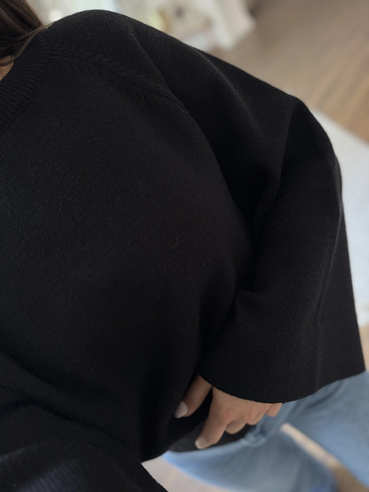 GENİŞ KOL REGLAN KOL DÖKÜMLÜ VİSKON KAZAK – SİYAH