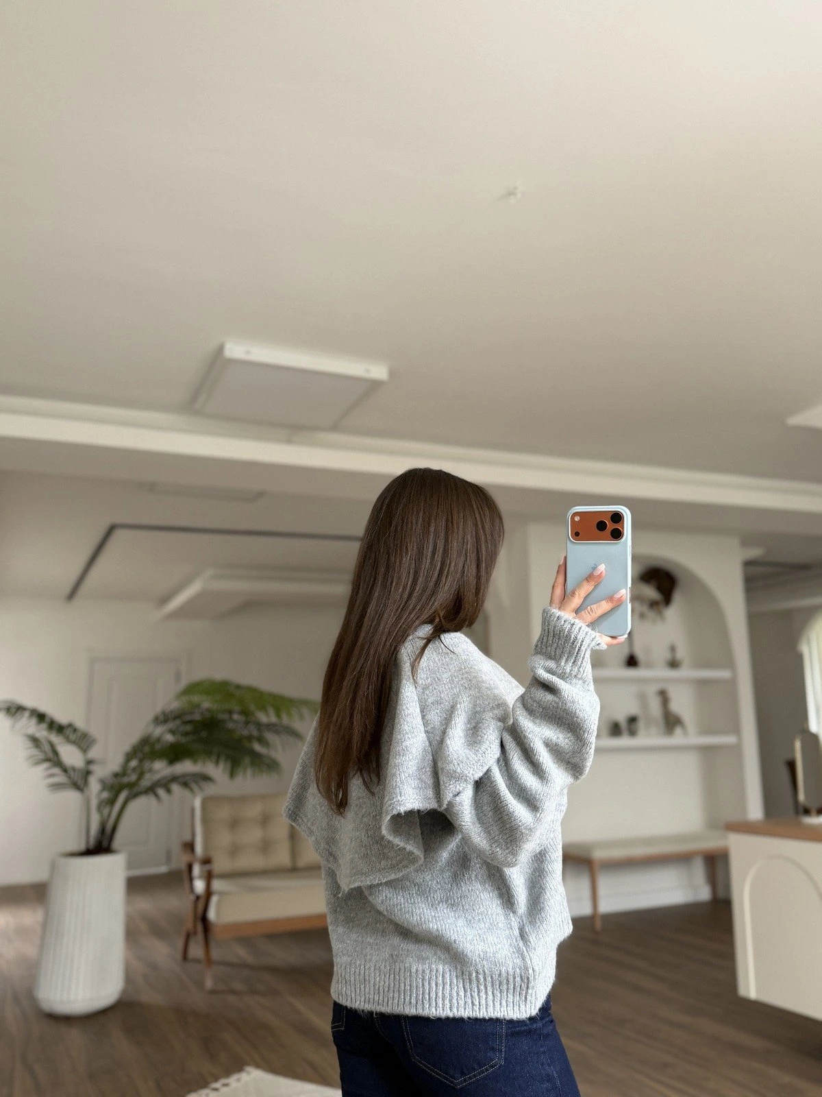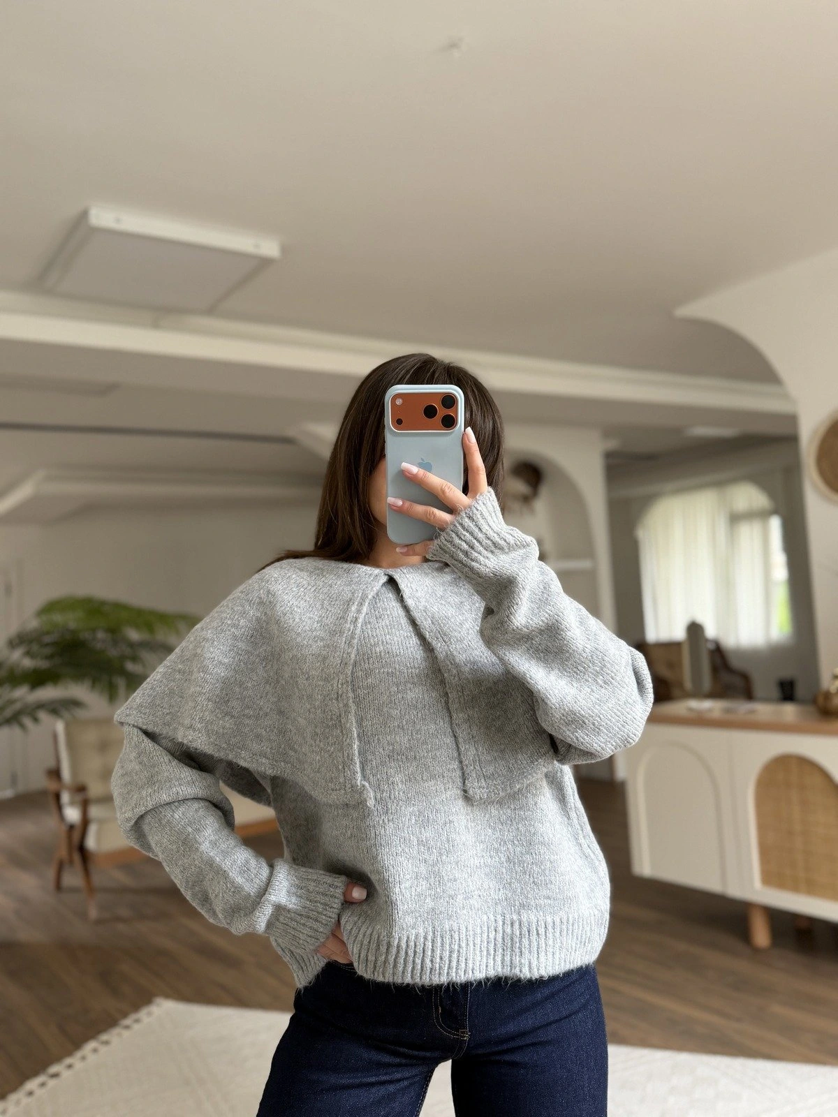 GENİŞ ŞAL YAKA SALAŞ KAZAK – GRİ