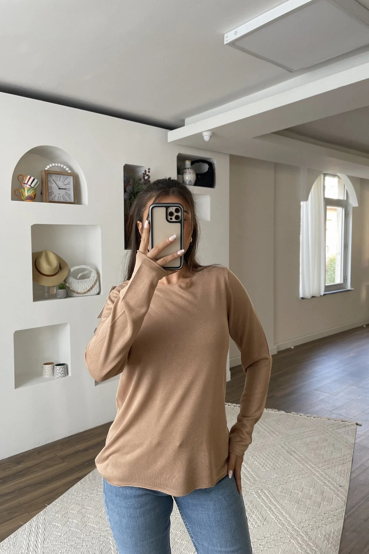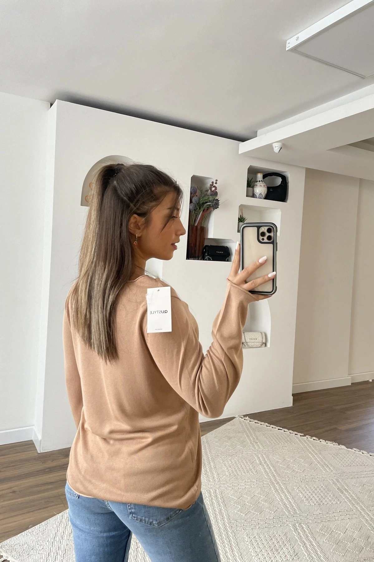 GENİŞ YAKA VİSKON SALAŞ KAZAK – BEJ