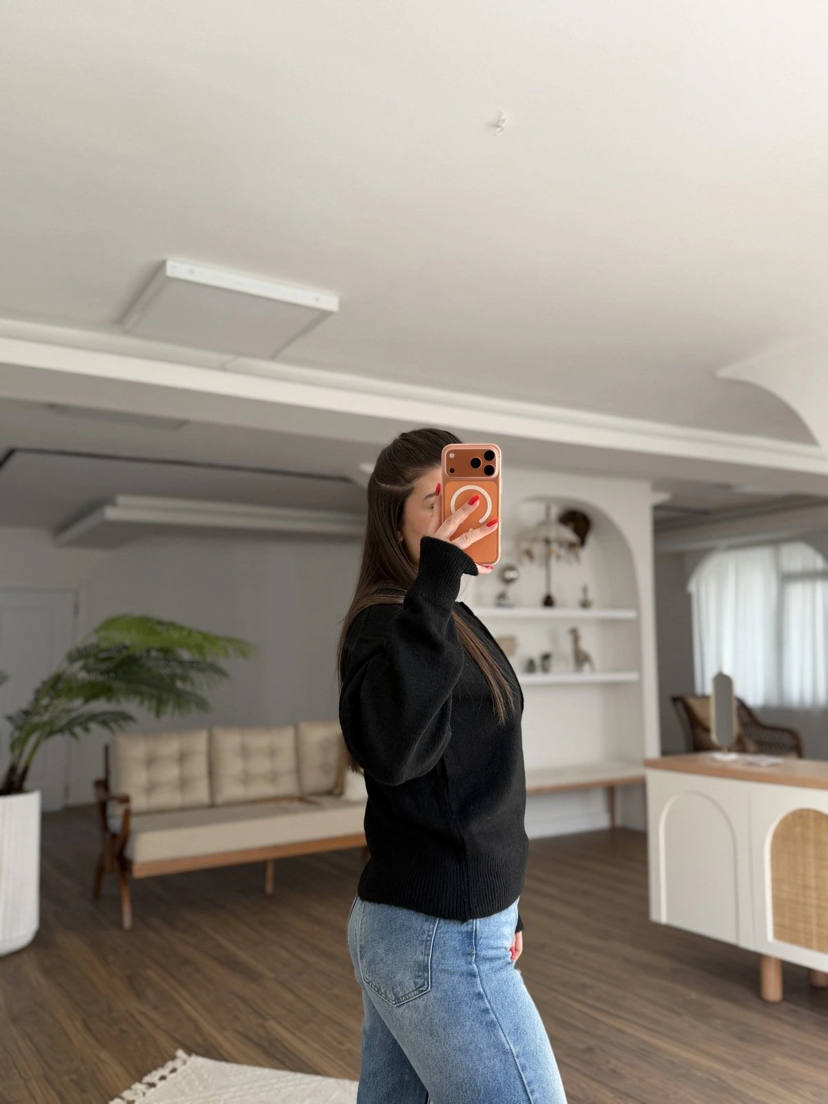 GOLD DÜĞME BİSİKLET YAKA KAZAK – SİYAH