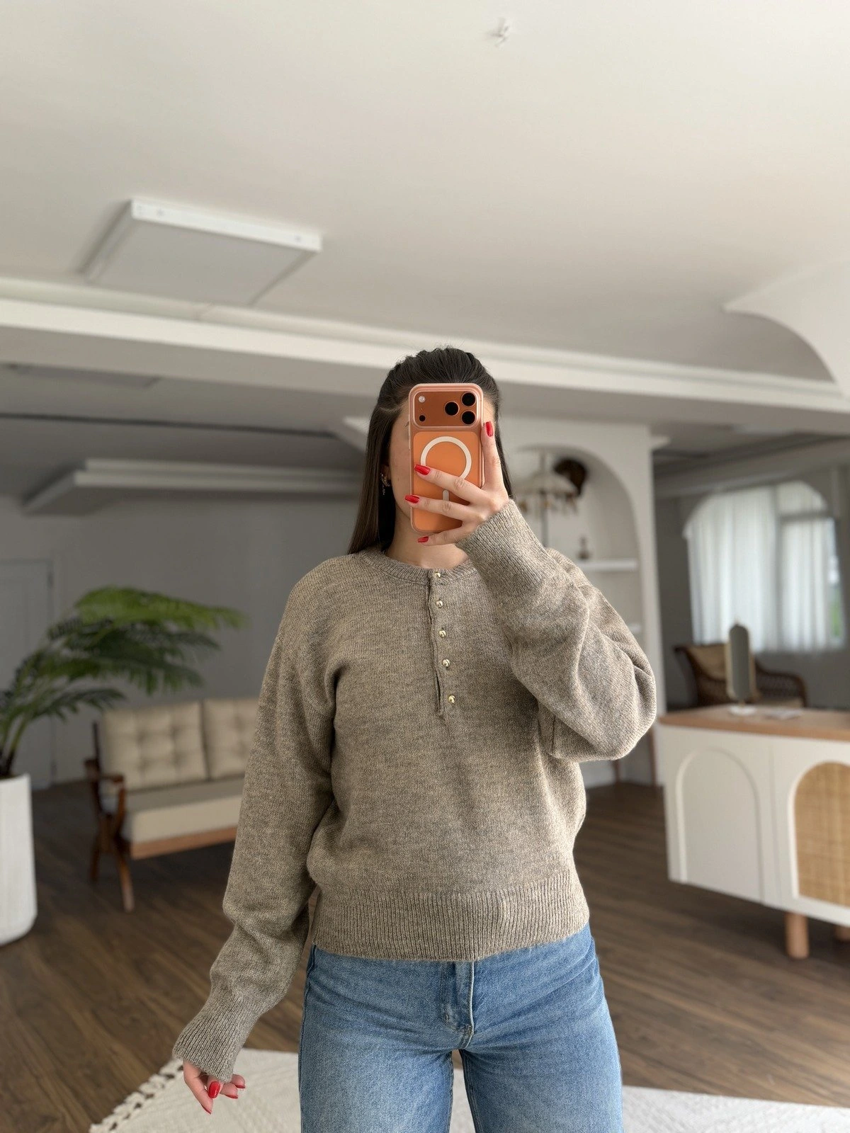 GOLD DÜĞME BİSİKLET YAKA KAZAK – VİZON
