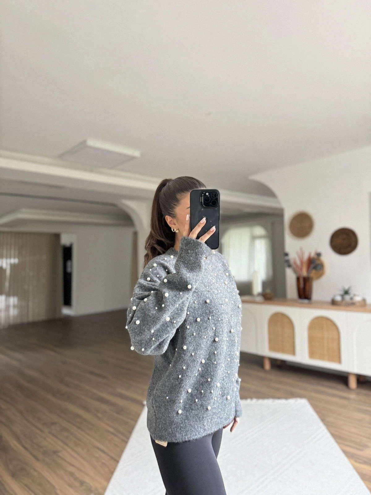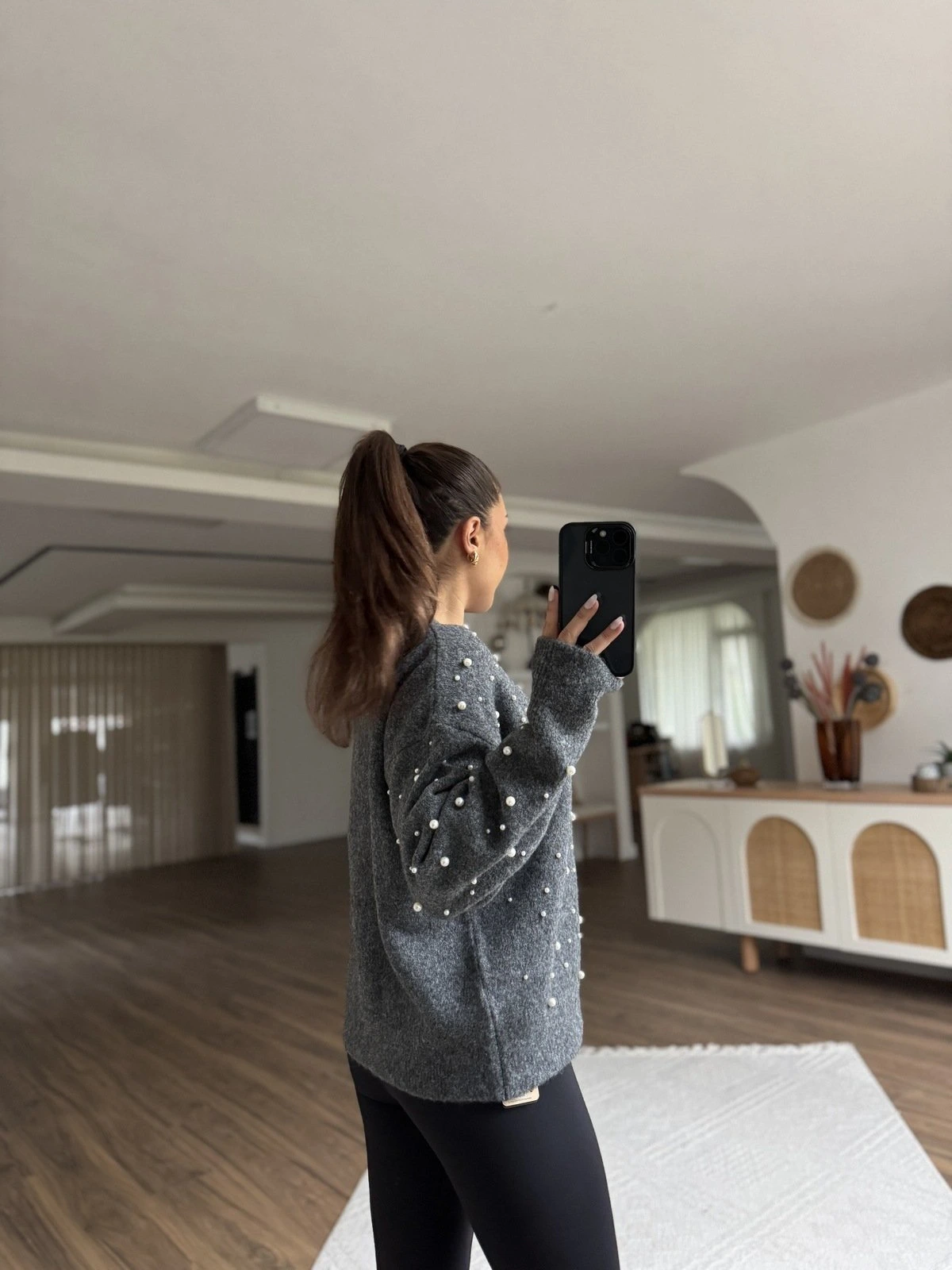 İNCİ ÇAKIM YÜN KARIŞIM BİSİKLET YAKA KAZAK – ANTRASİT