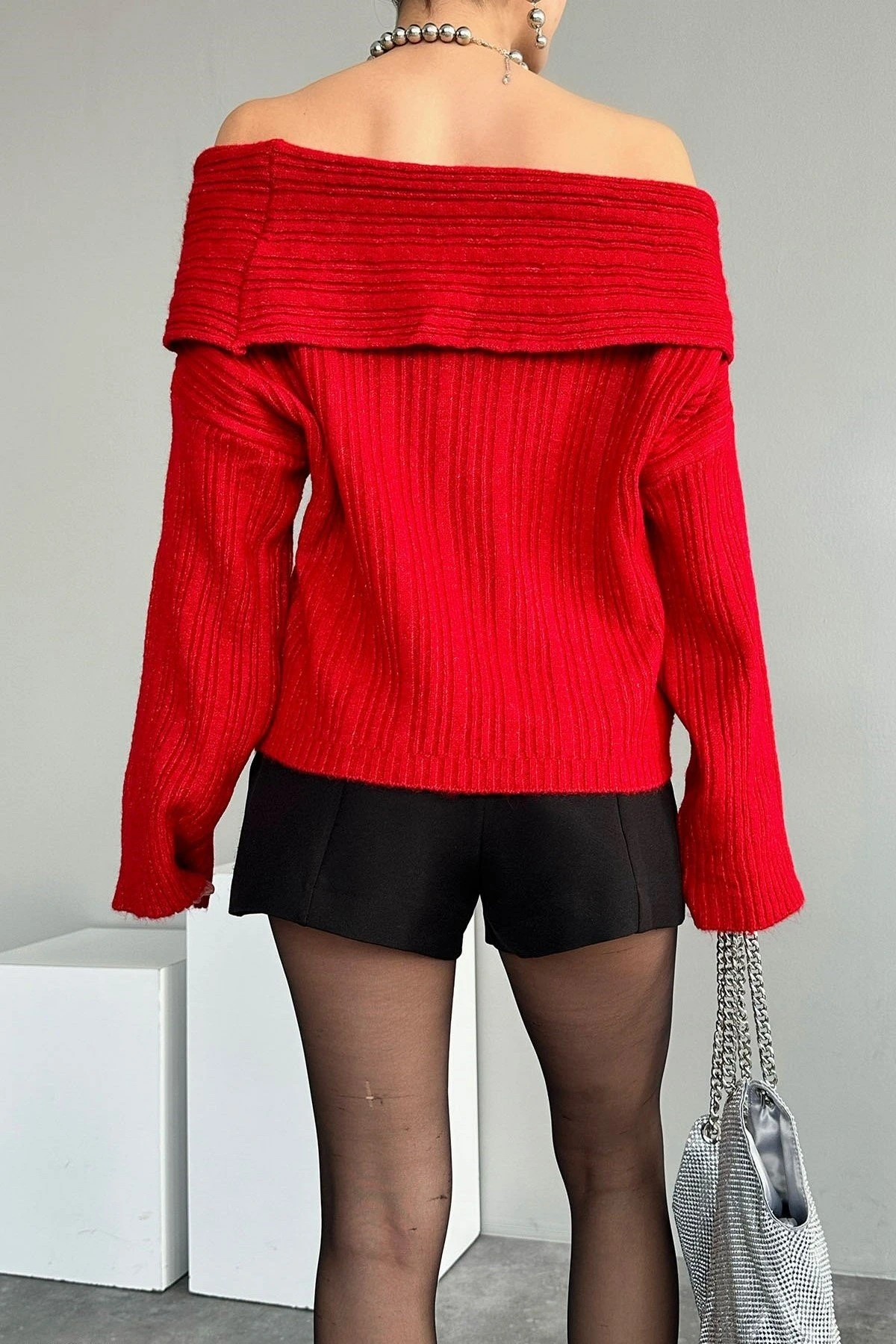 KAYIK KAT YAKA FİTİLLİ KAZAK – KIRMIZI