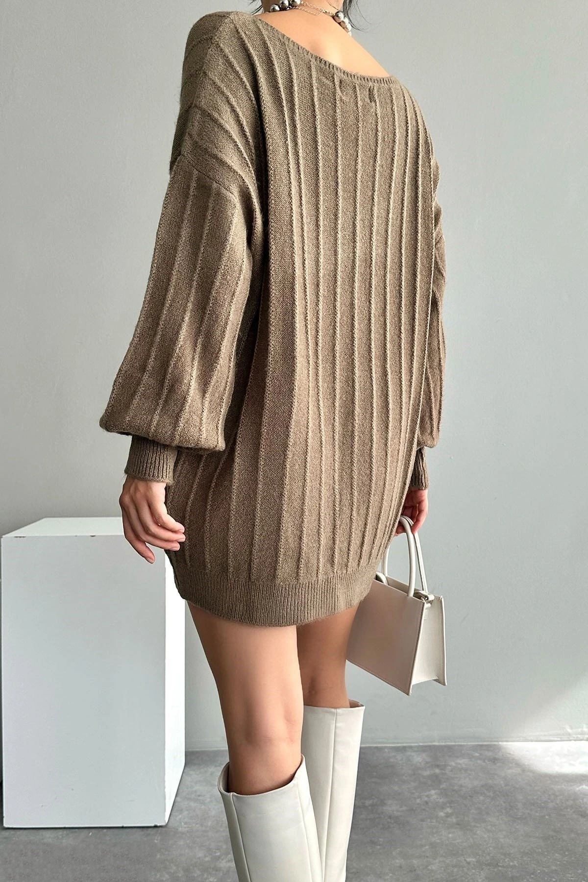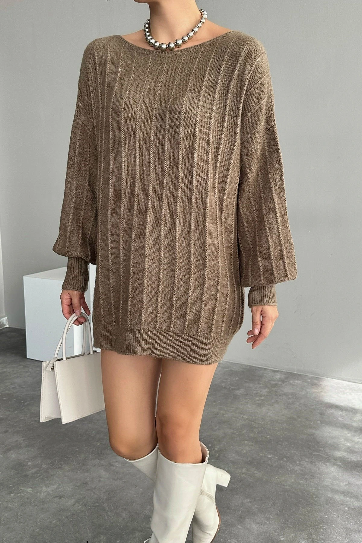 KAYIK YAKA DOKUMA DETAY SALAŞ KAZAK – KOYU VİZON