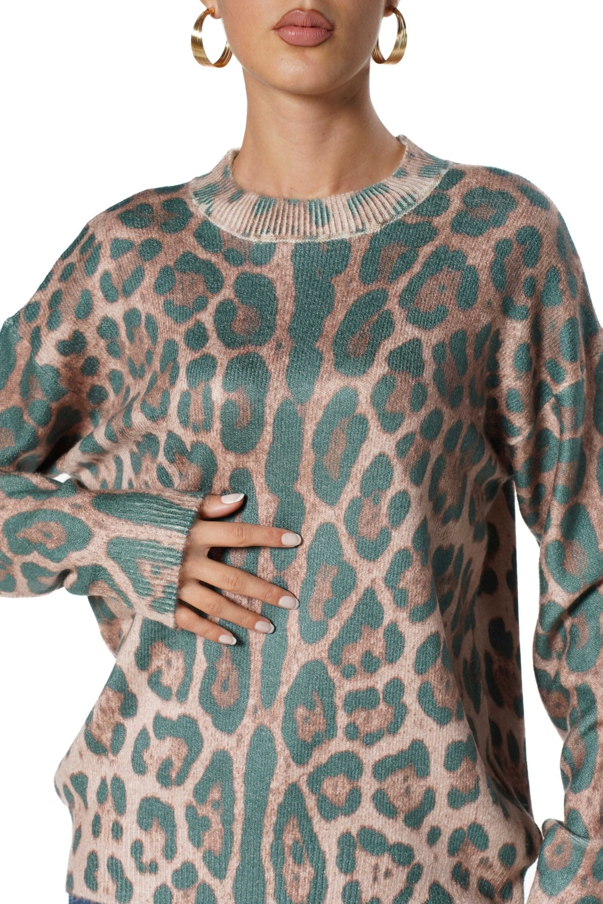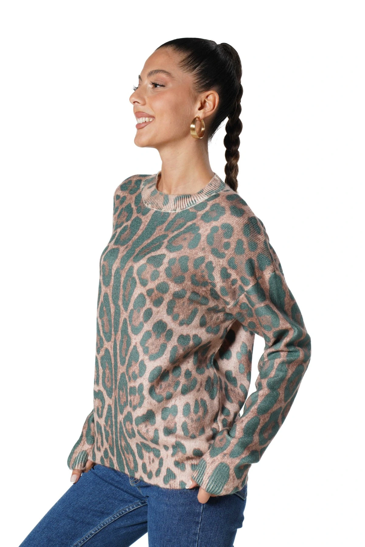 LEOPAR BASKI BİSİKLET YAKA VİSKON ALPAKA KAZAK – LEOPAR