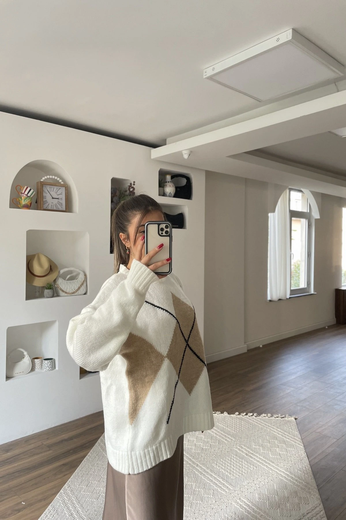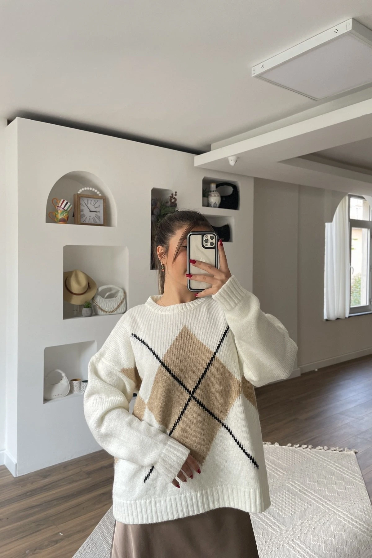MNG BAKLAVA DESEN SALAŞ KAZAK – KREM BEJ