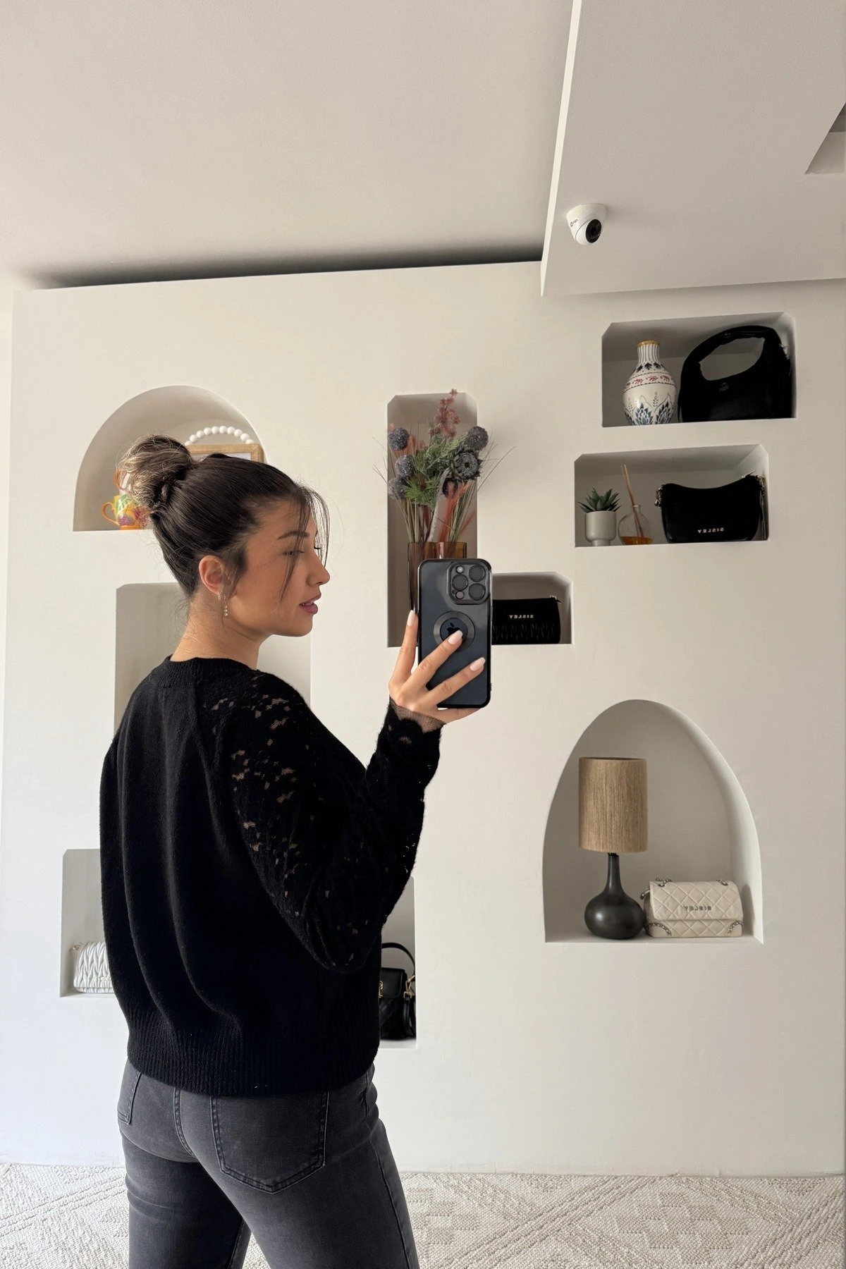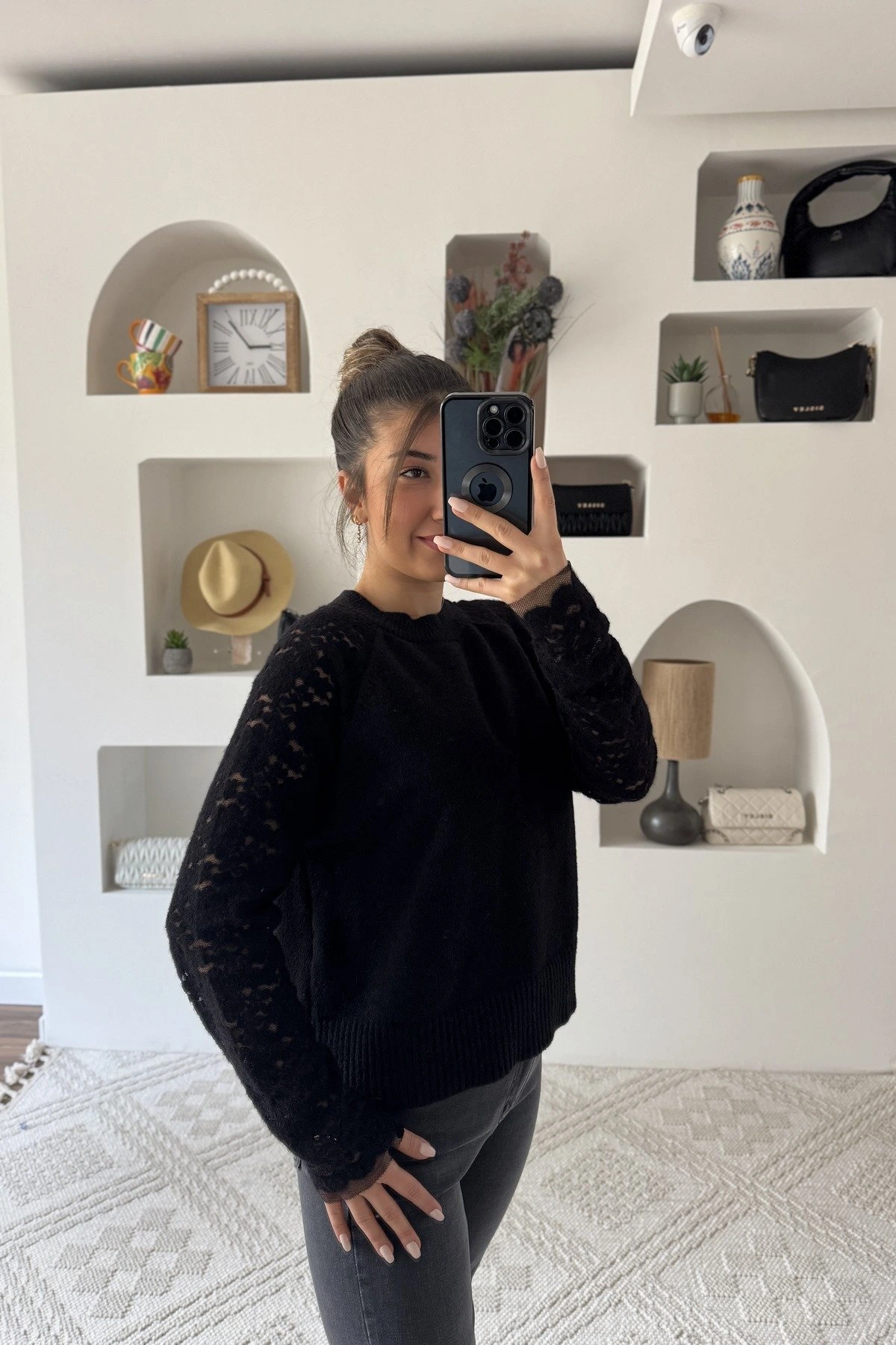 OMUZ KOL GÜPÜR YUMUŞAK DOKU KAZAK – SİYAH