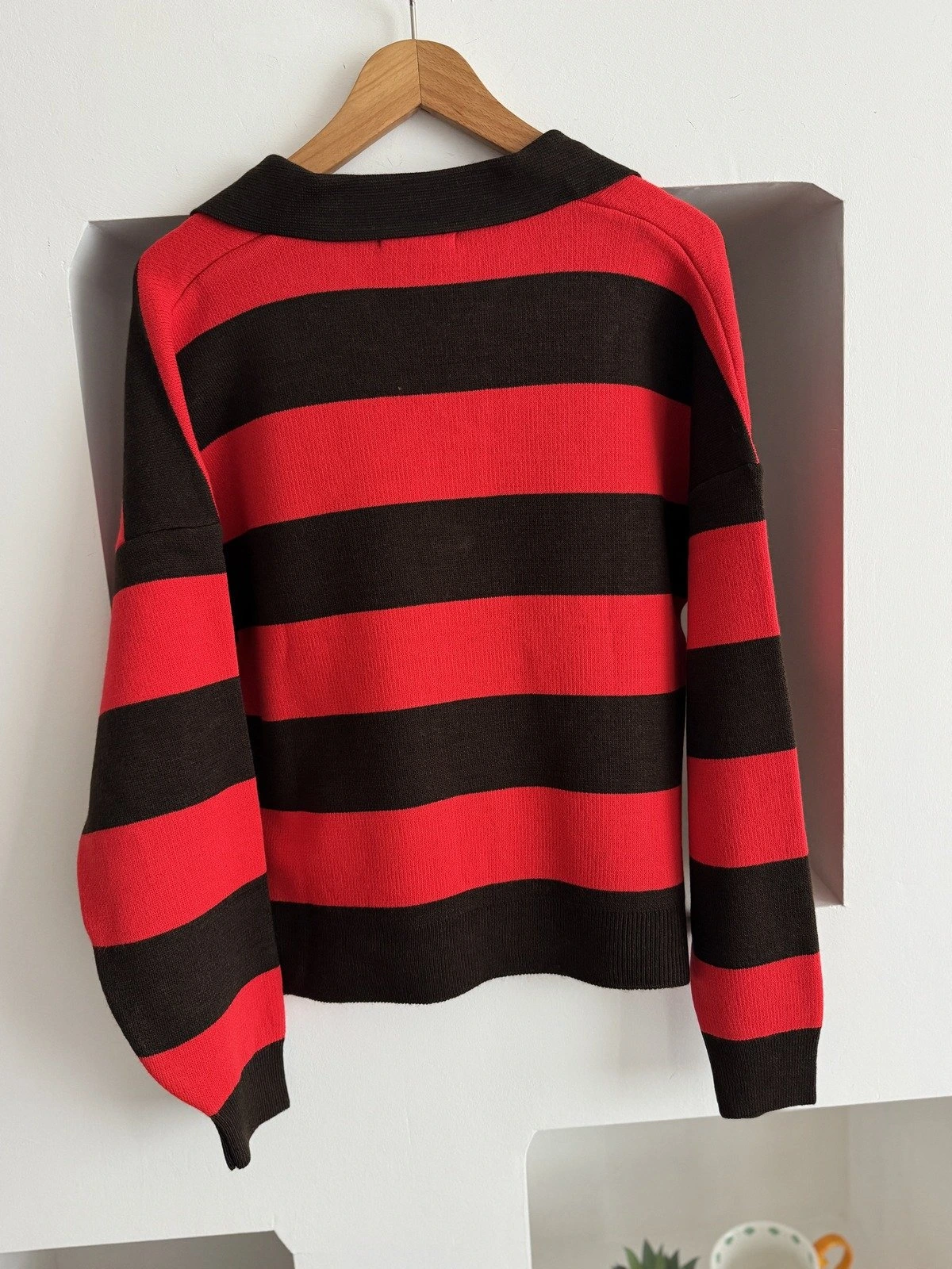 POLO V YAKA KALIN ŞERİTLİ KAZAK – KAHVE-KIRMIZI
