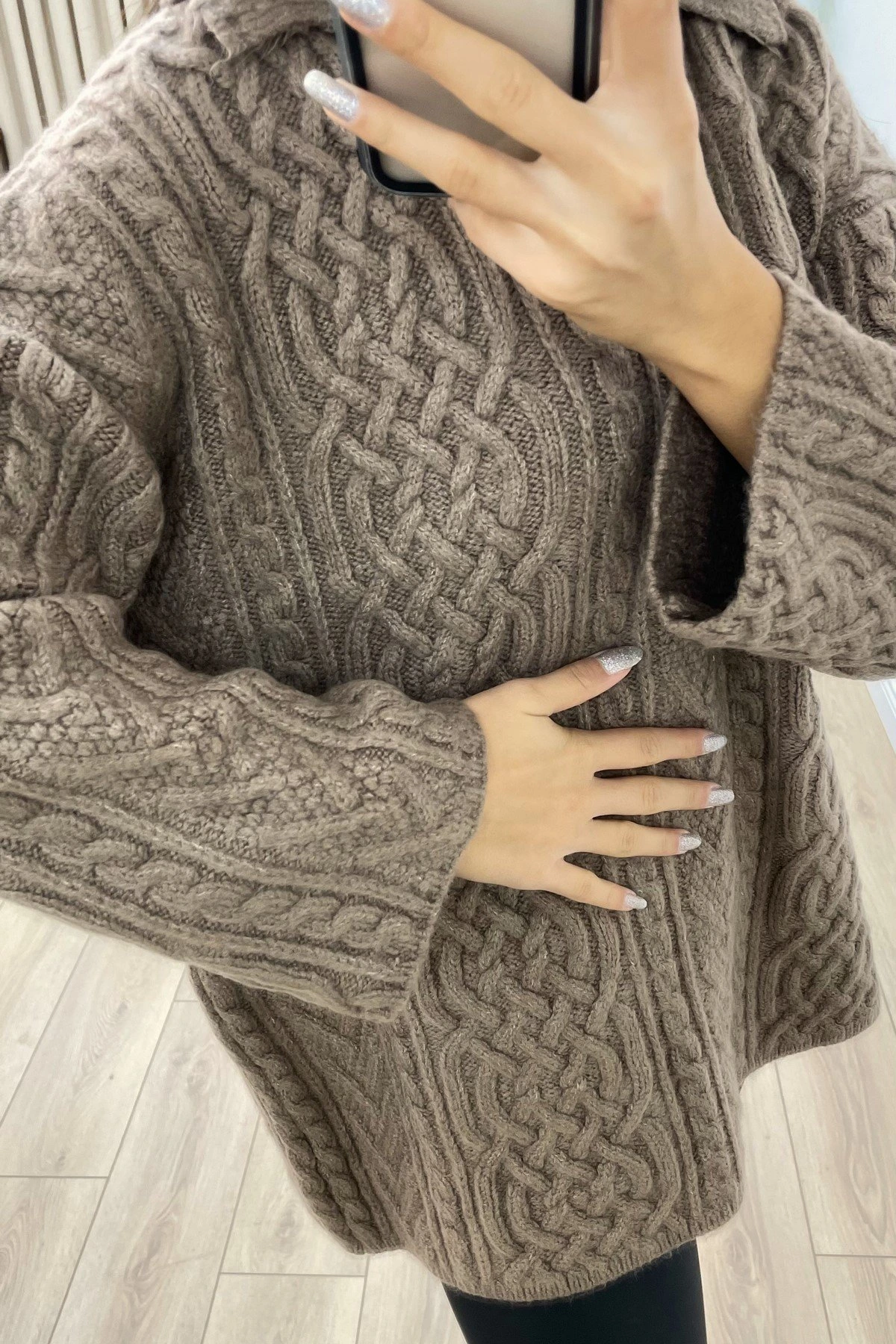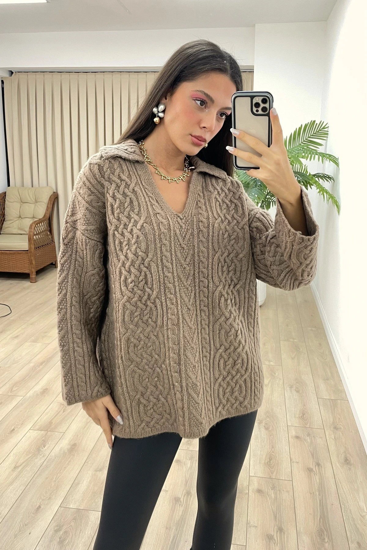 POLO V YAKA SAÇ ÖRGÜ SALAŞ KAZAK – VİZON