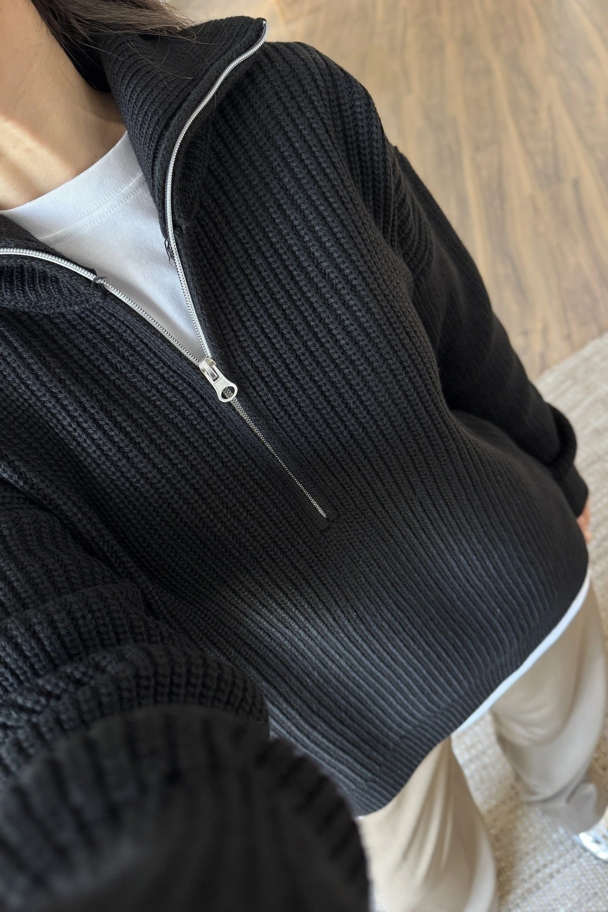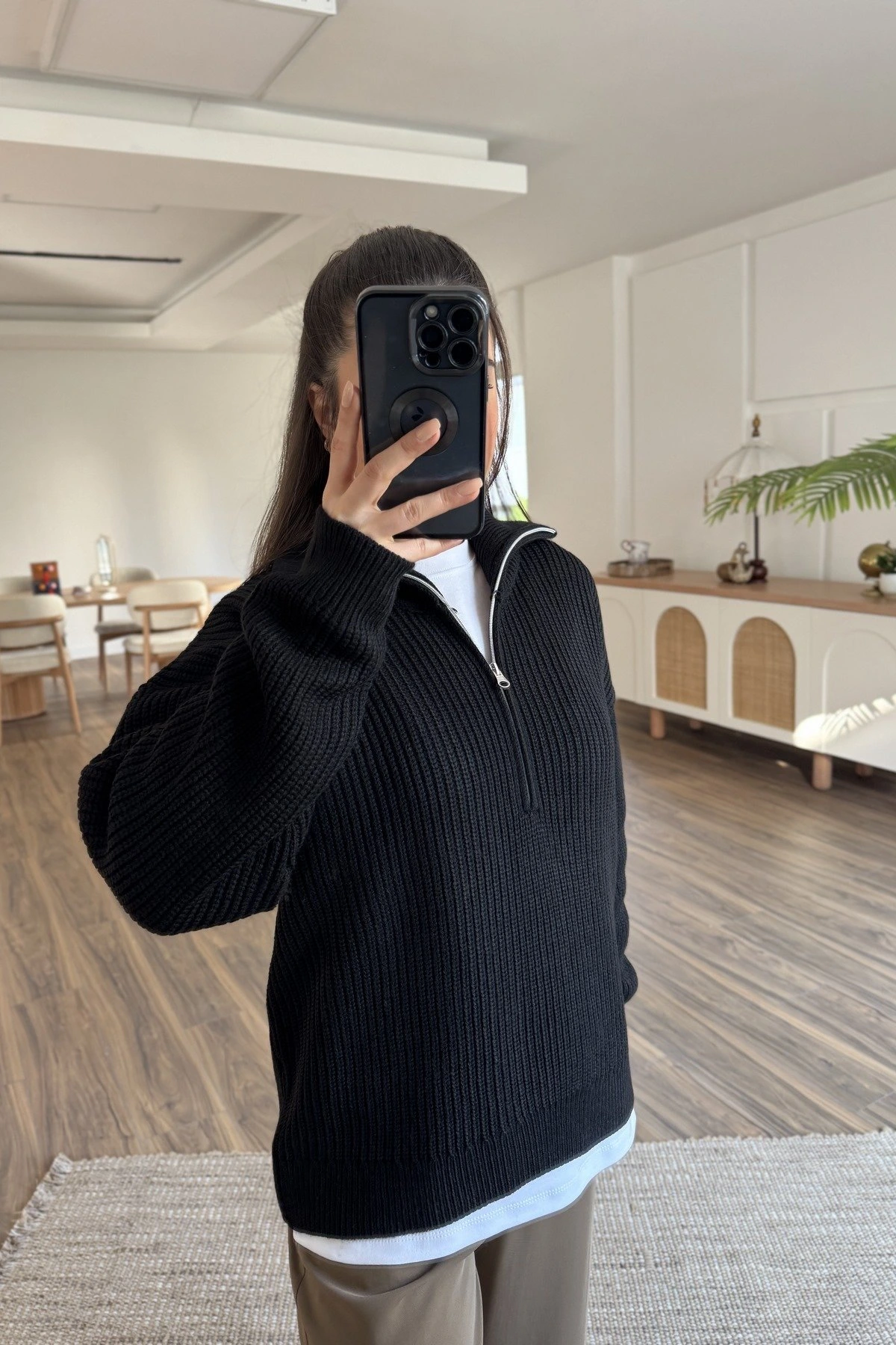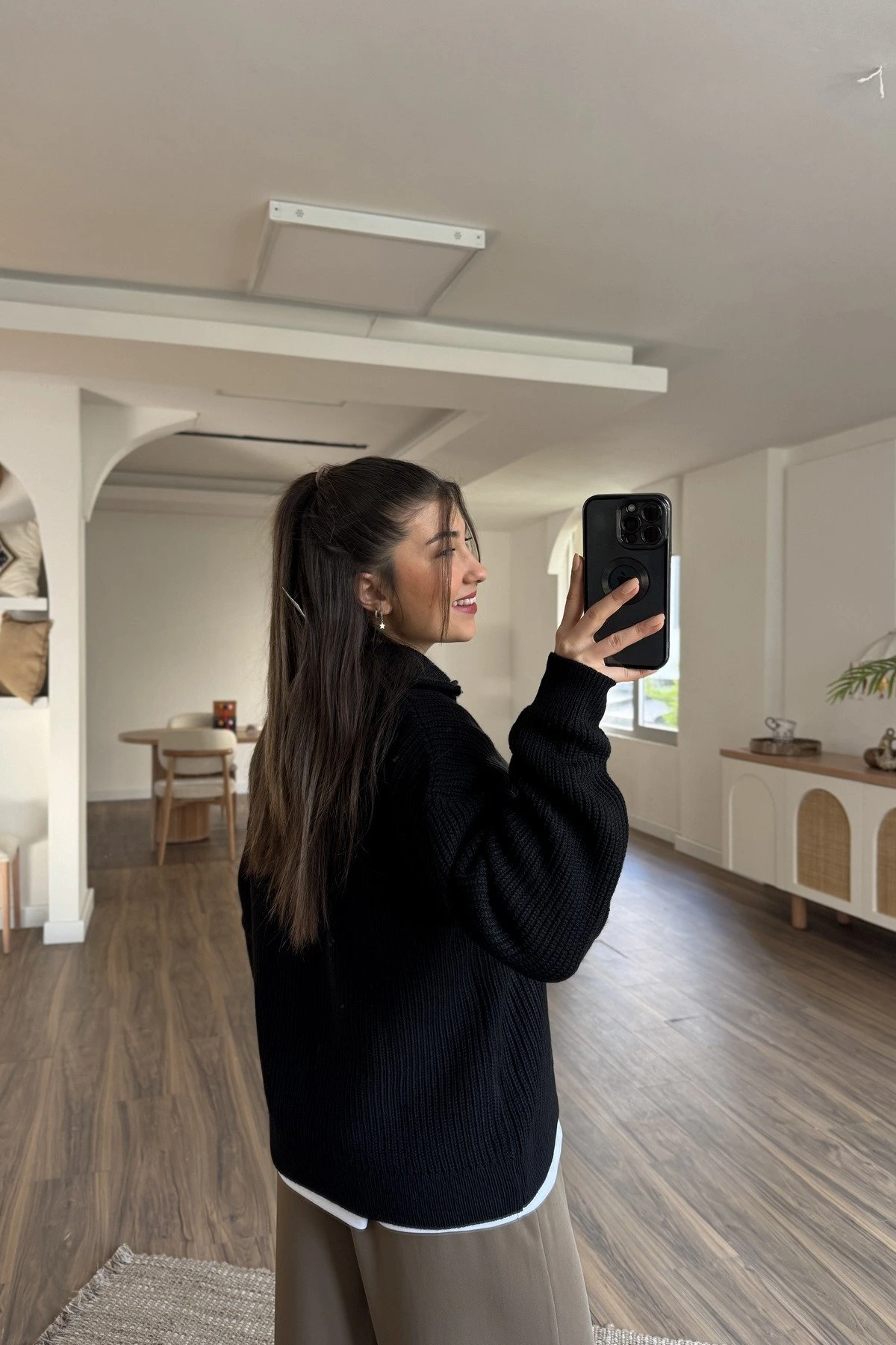 POLO YAKA FERMUARLI KAZAK – SİYAH