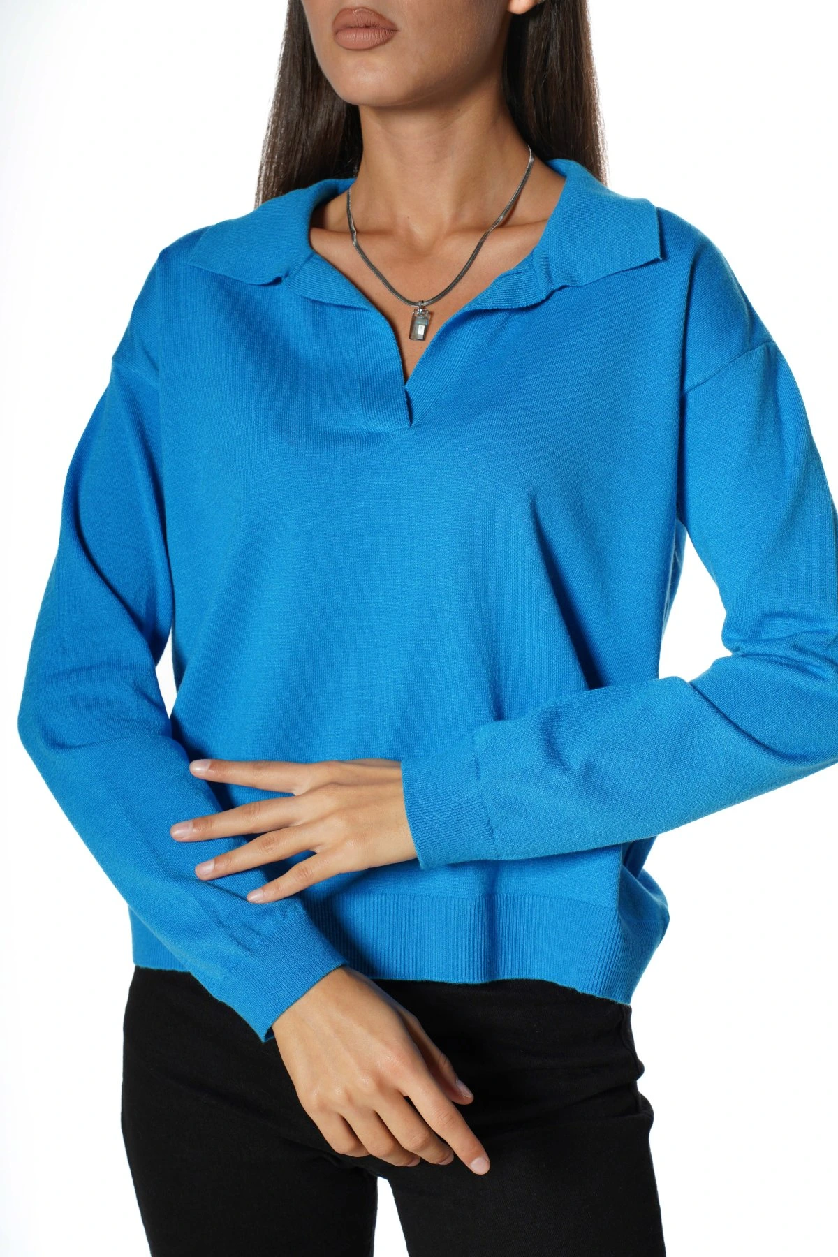 POLO YAKA VİSKON KAZAK – MAVİ