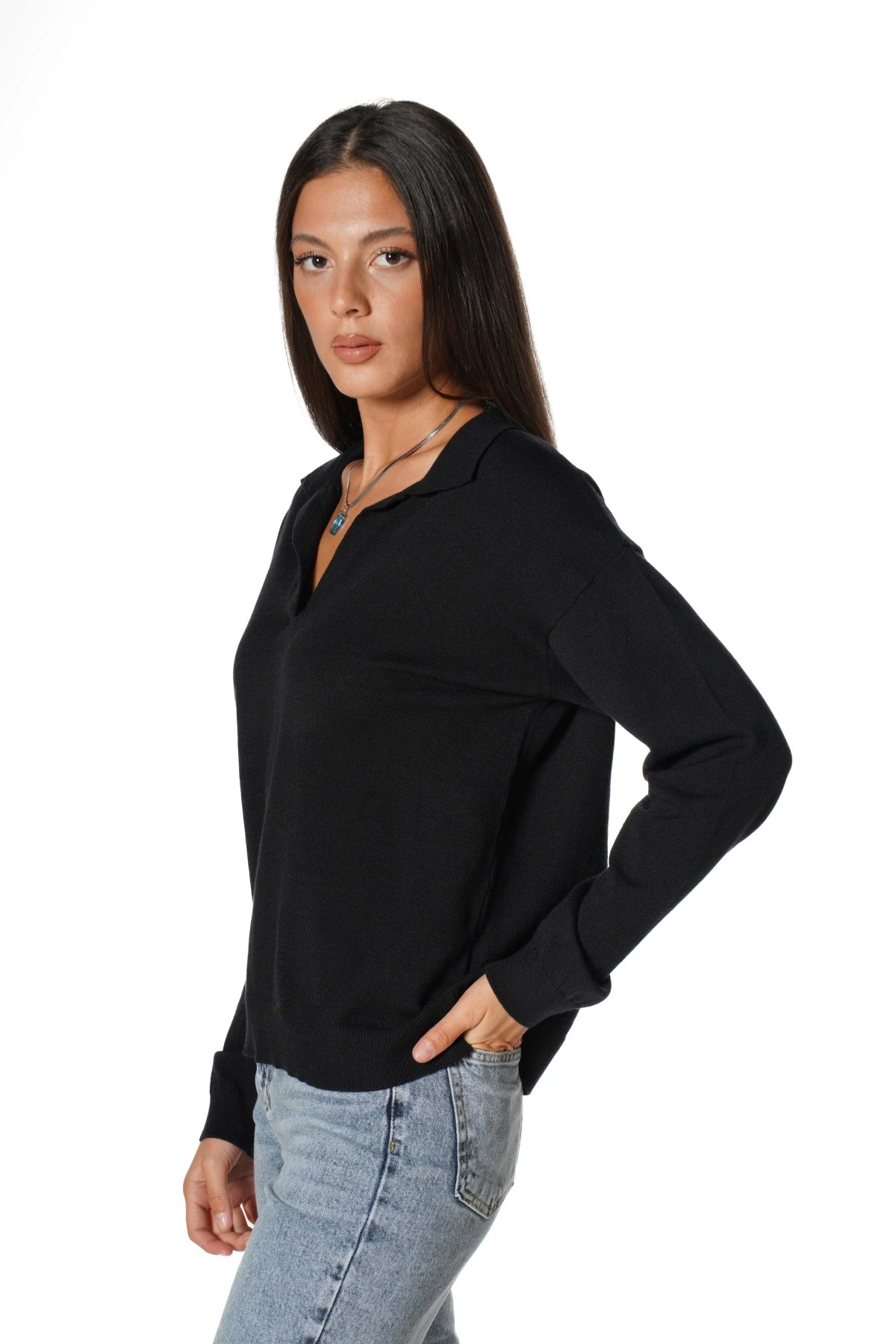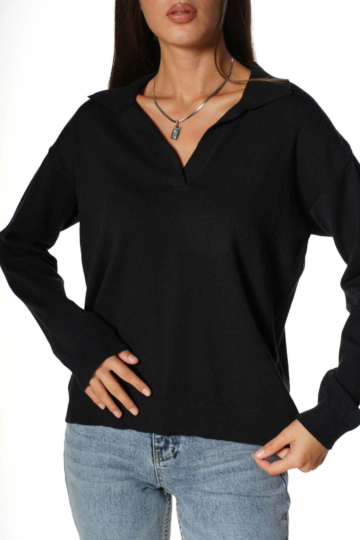 POLO YAKA VİSKON KAZAK – SİYAH