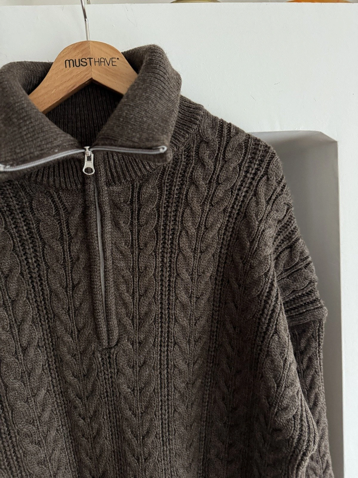 SAÇ ÖRGÜ FERMUARLI SALAŞ KAZAK – KAHVE MELANJ
