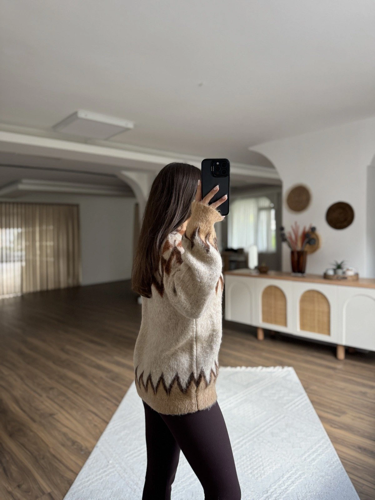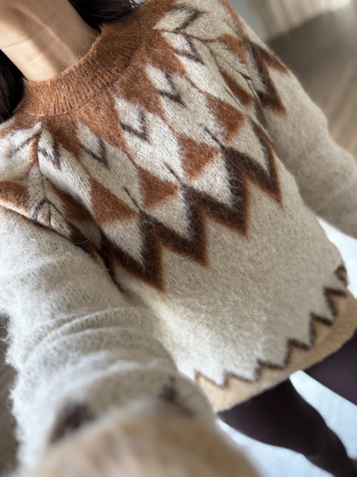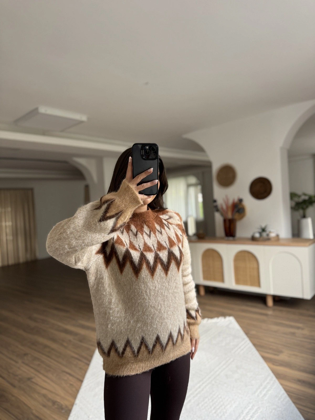 ŞARDONLU ALPAKA KARIŞIM BAKLAVA DESEN KAZAK – KARAMEL