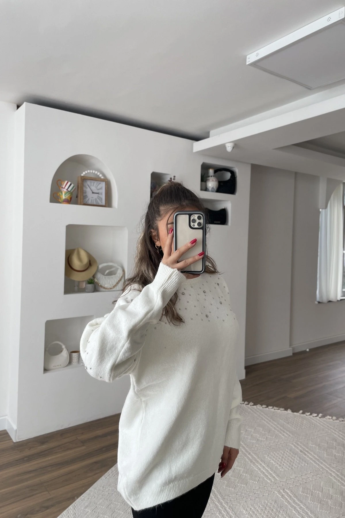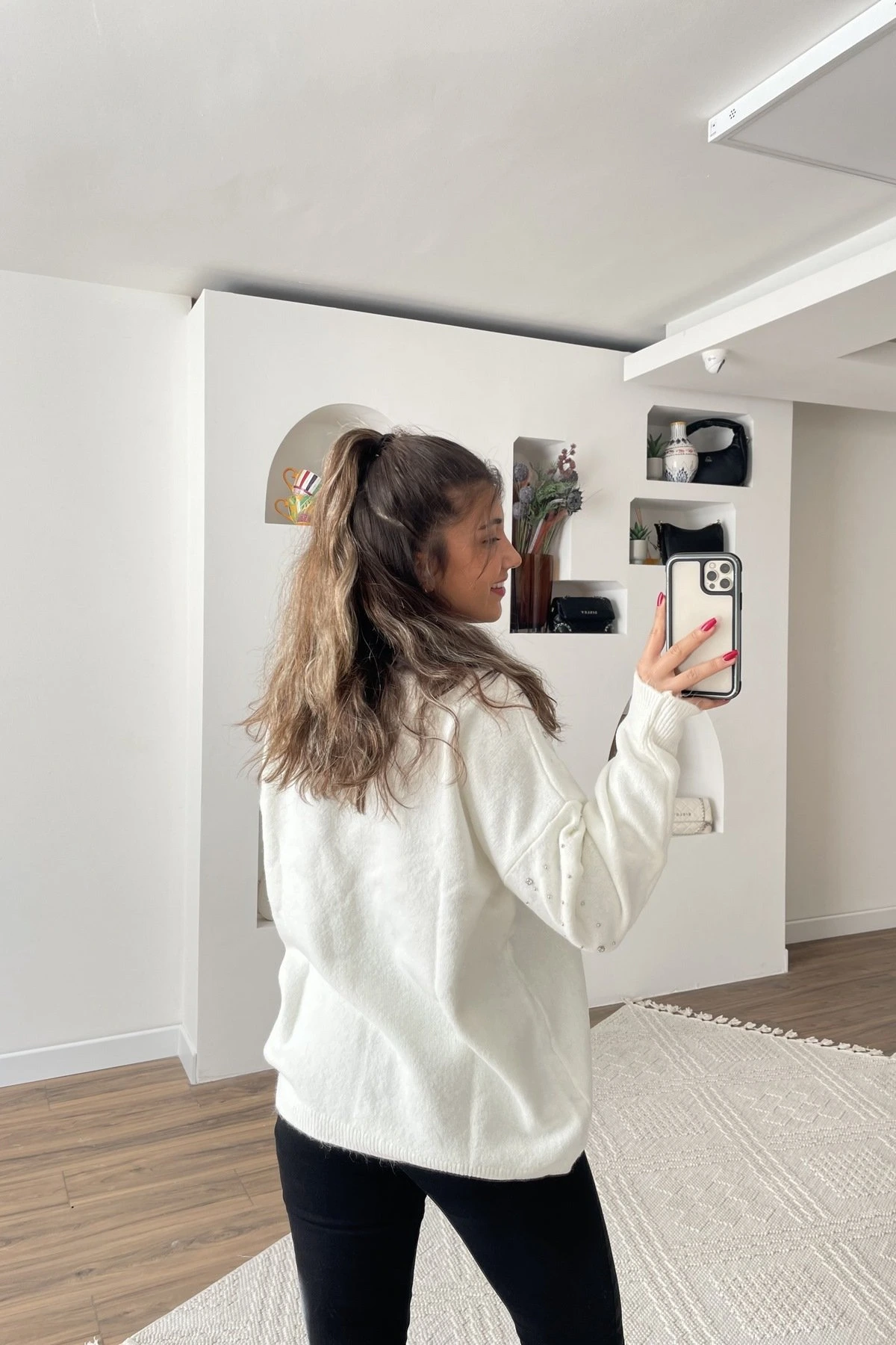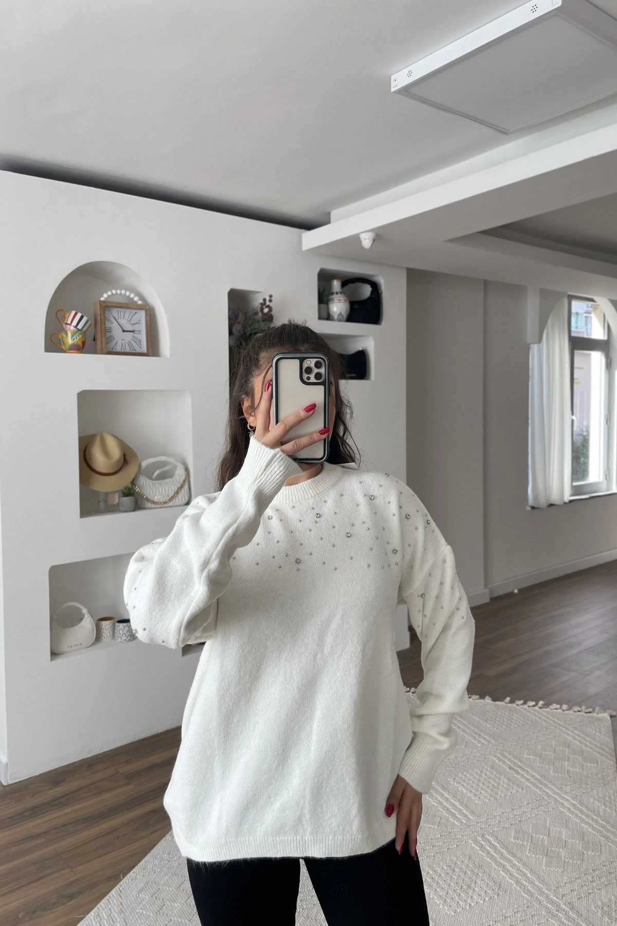 SERPME TAŞ DORİKA ÇAKIM BİSİKLET YAKA KAZAK – KEMİK