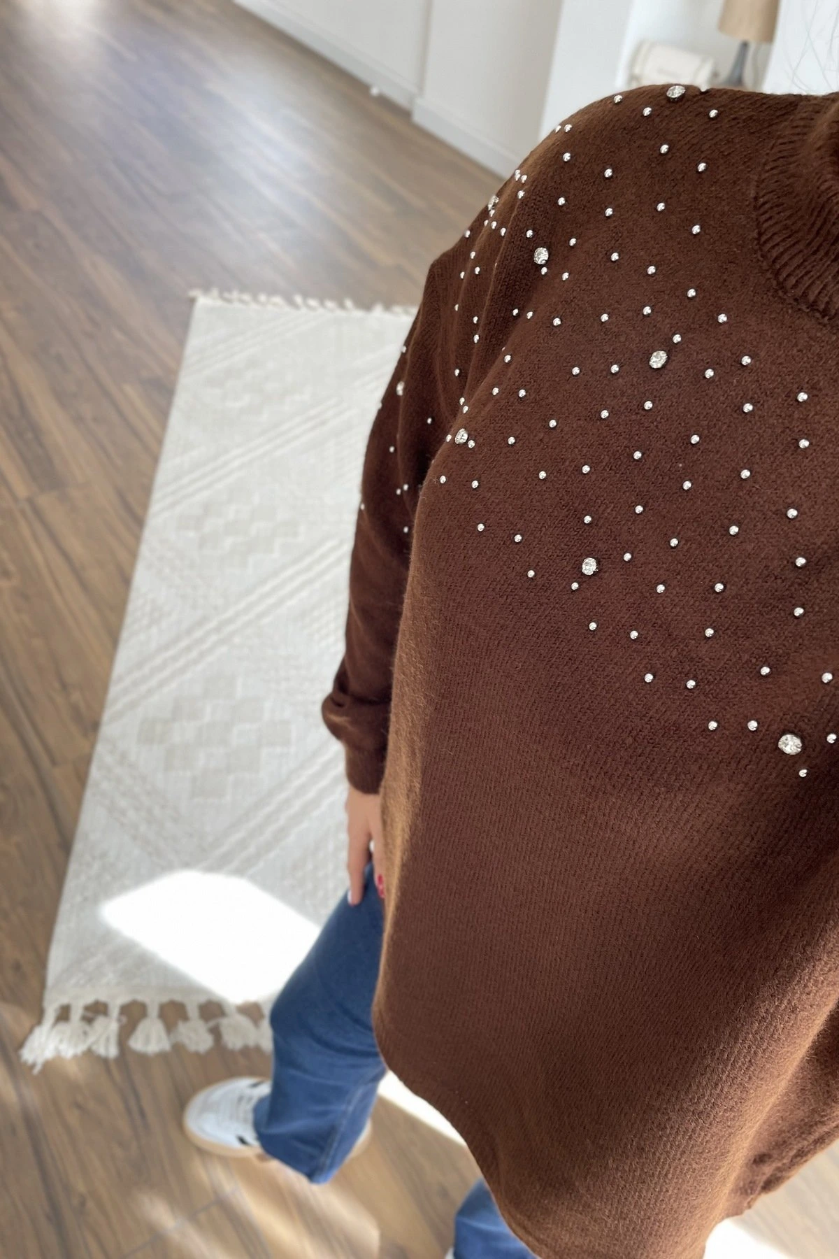 SERPME TAŞ DORİKA ÇAKIM BİSİKLET YAKA KAZAK – KOYU KAHVE