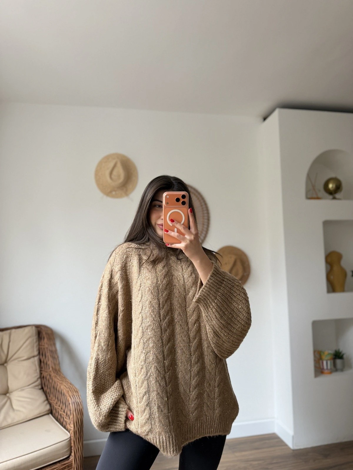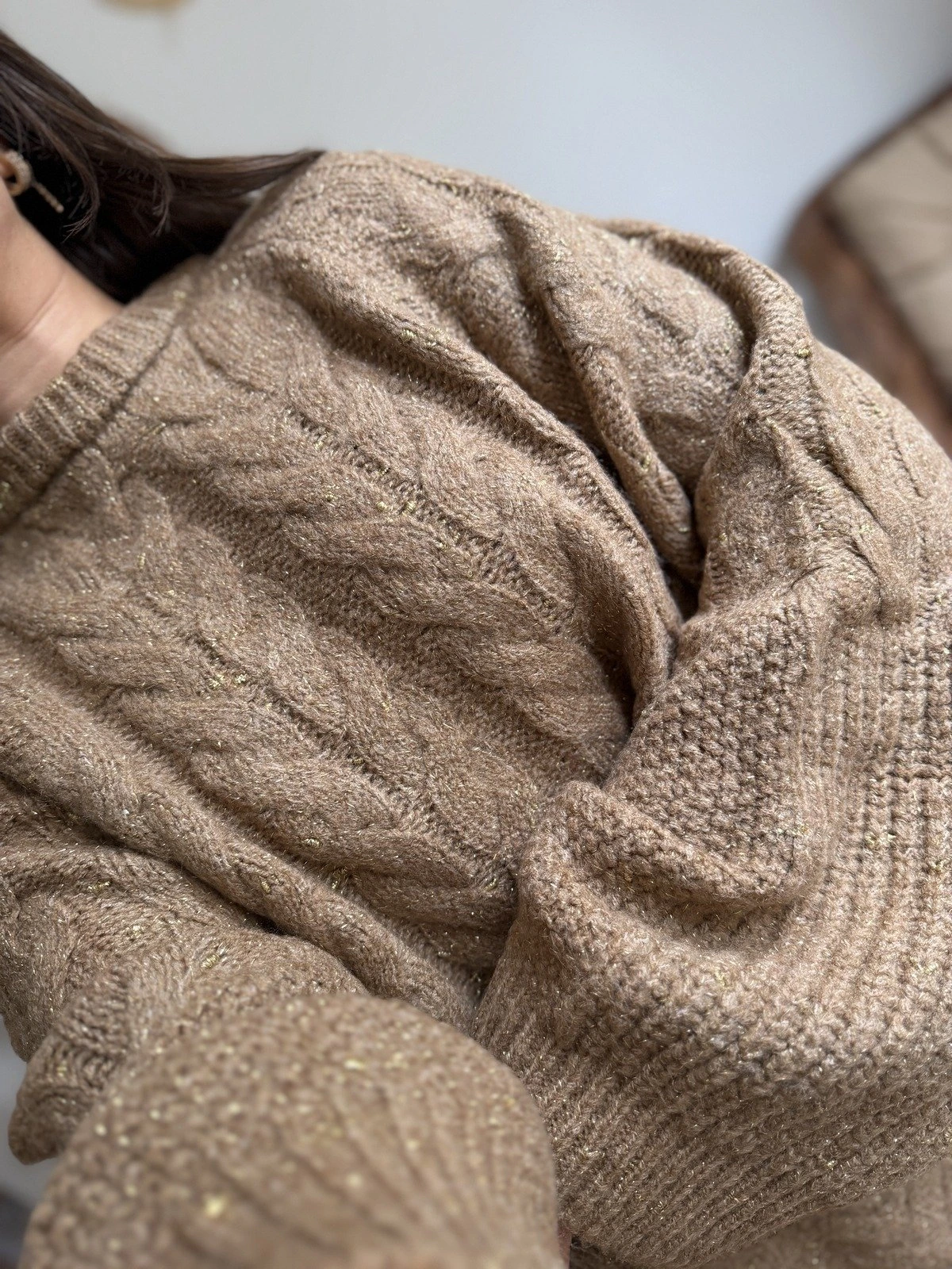 SİMLİ GENİŞ ÖRGÜ REGLAN KOL SALAŞ KAZAK – CAMEL