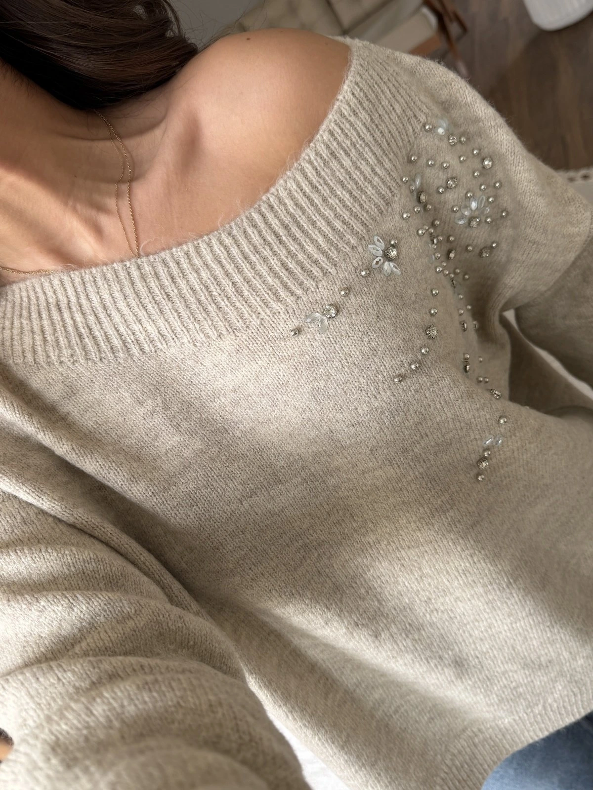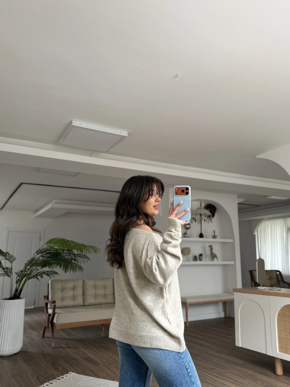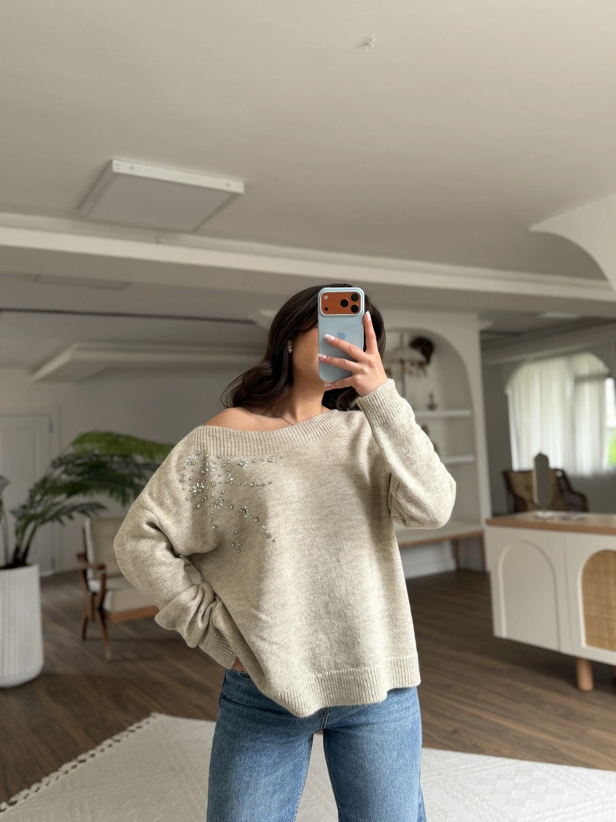 TEK OMUZ TAŞLI SALAŞ KAZAK – AÇIK BEJ