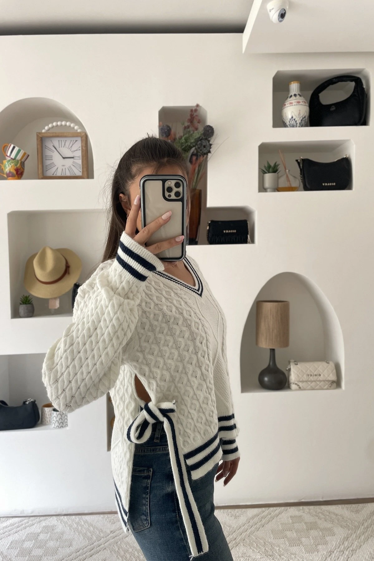 “V YAKA ÇİZGİ ŞERİT YAN BAĞLAMALI KAZAK – EKRU” için yorum yapan ilk kişi siz olun Yanıtı iptal et