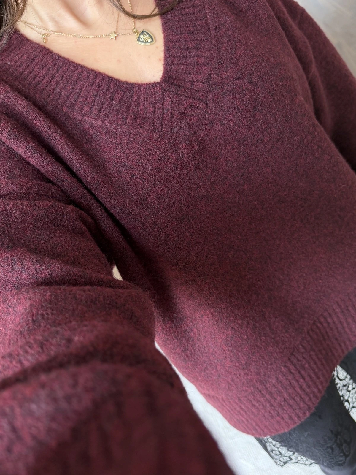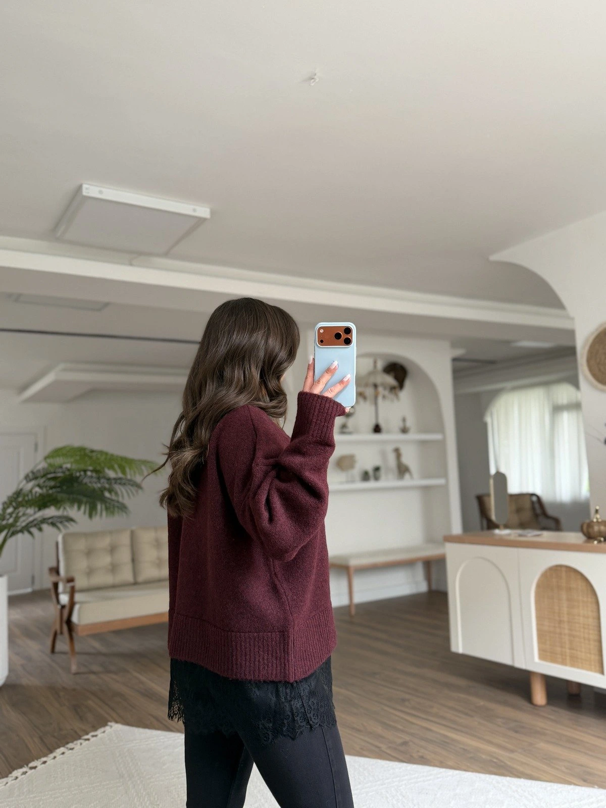V YAKA ETEĞİ DANTEL SALAŞ KAZAK – BORDO