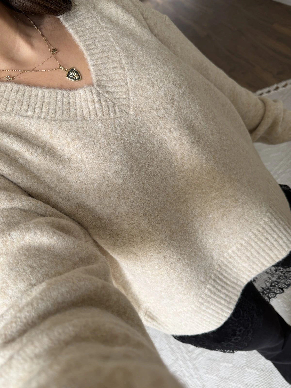 V YAKA ETEĞİ DANTEL SALAŞ KAZAK - OLİVE