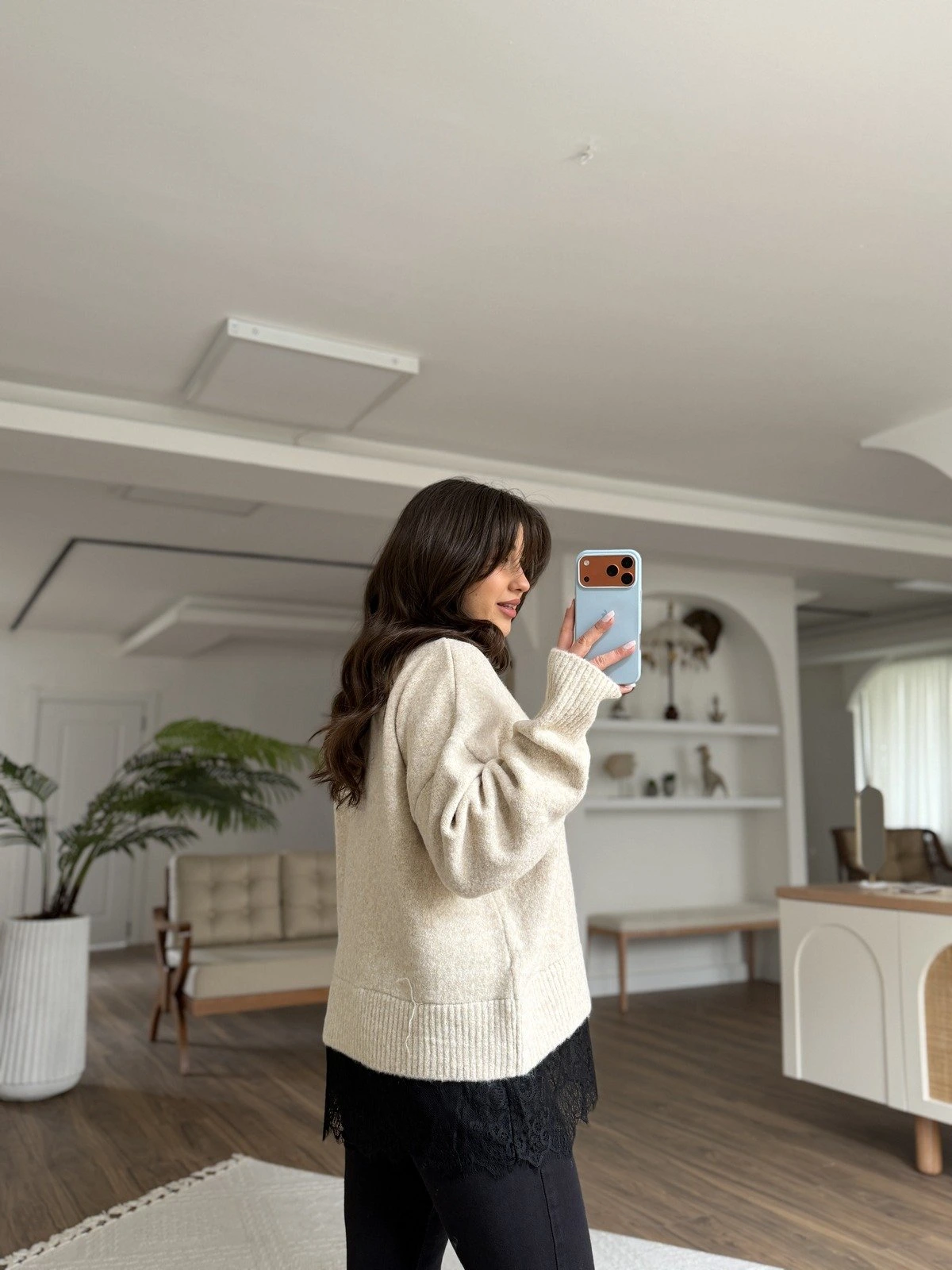 V YAKA ETEĞİ DANTEL SALAŞ KAZAK – TAŞ