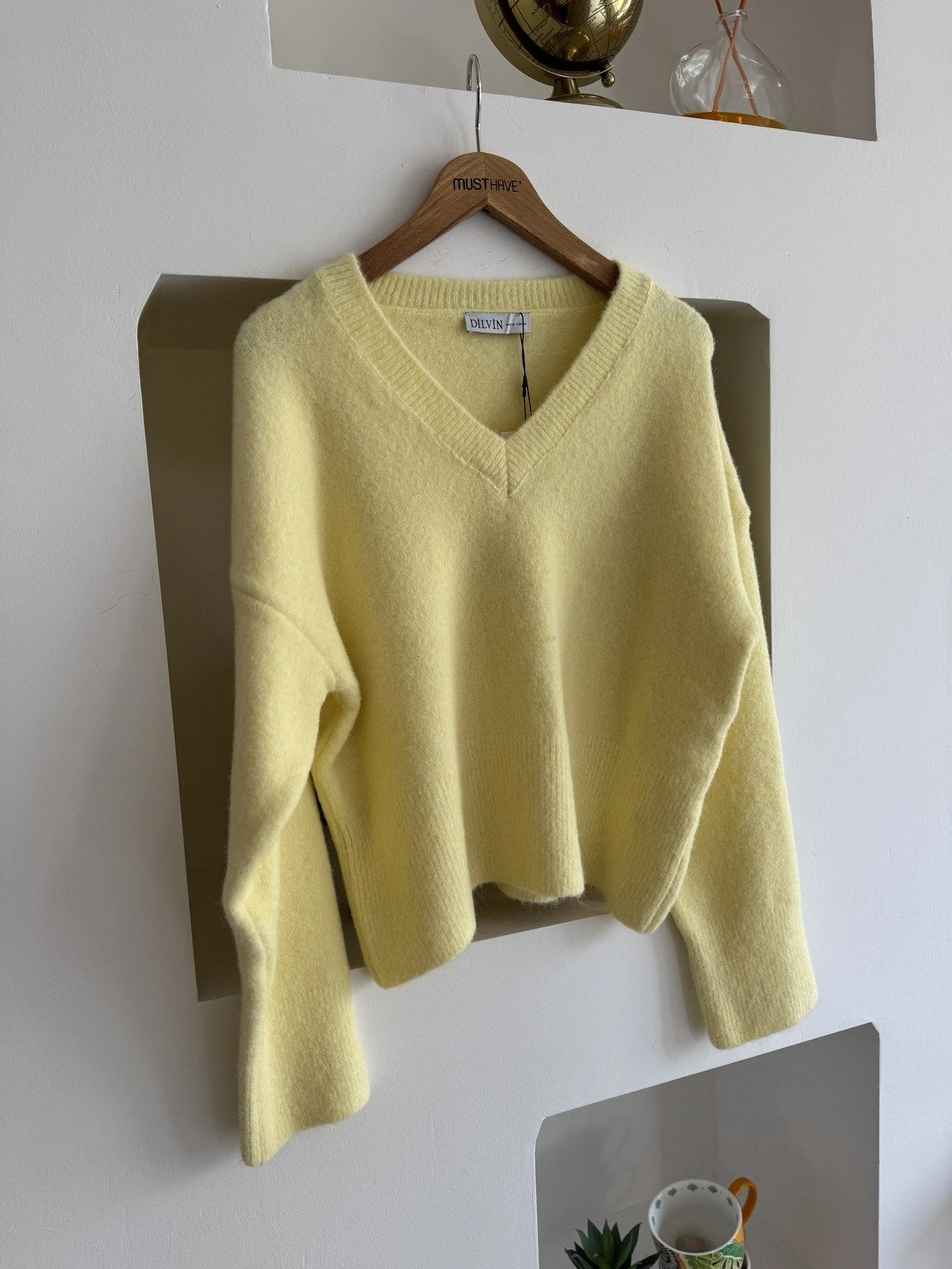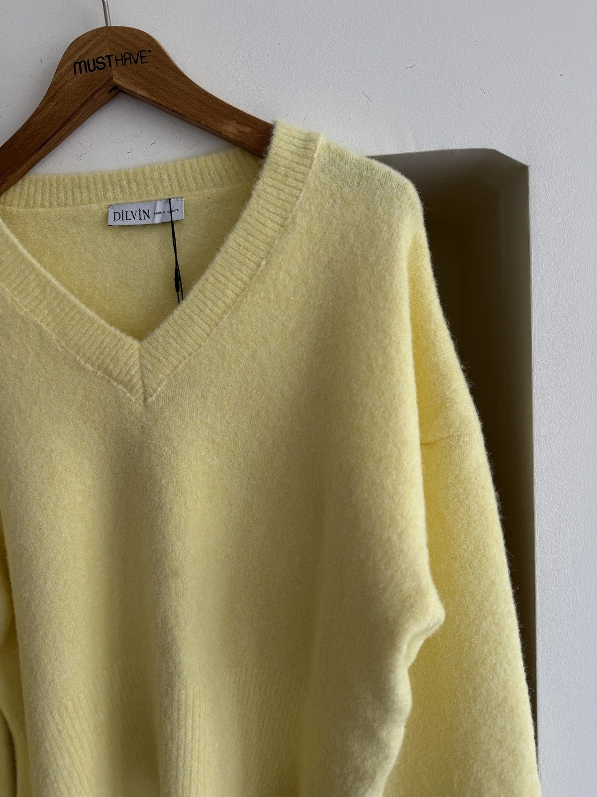 “V YAKA YUMUŞAK DOKU YÜN KARIŞIMLI DÜŞÜK OMUZ KAZAK – AÇIK SARI” için yorum yapan ilk kişi siz olun Yanıtı iptal et